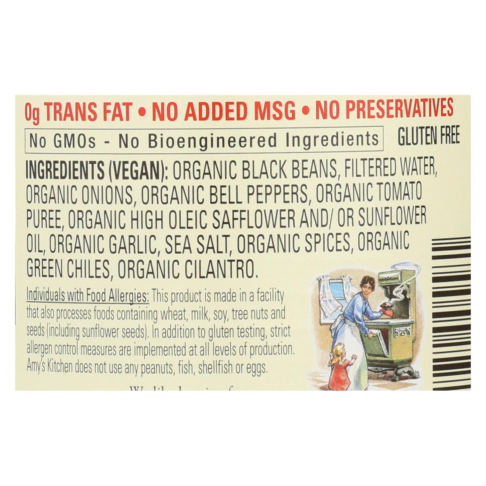 Amy's organic vegetarian black refried beans - a cozy meal for those looking to reconnect with natural, simple ingredients. Prepare your favorite mexican dish with these organic refried black beans. Our 15.4 oz. Beans are low in sodium and crafted with organic black beans, onions, bell peppers and tomato puree. Each recipe of gluten-free, all-vegan black refried beans contains absolutely no preservatives while being packed with 6 grams of dietary fiber and 8 grams protein per serving. Our beans are usda-certified organic, non-gmo and are packaged in non-bpa lined cans, so you can be sure that what you get is the real deal. See nutritional facts panel for allergens. Amy’s kitchen has grown beyond the berliner family’s wildest dreams, going from several family members pitching in anywhere they can, to a wonderful group of employees, farmers and suppliers. One thing will always remain the same—the family spirit that permeates every decision made inside of amy’s kitchen.