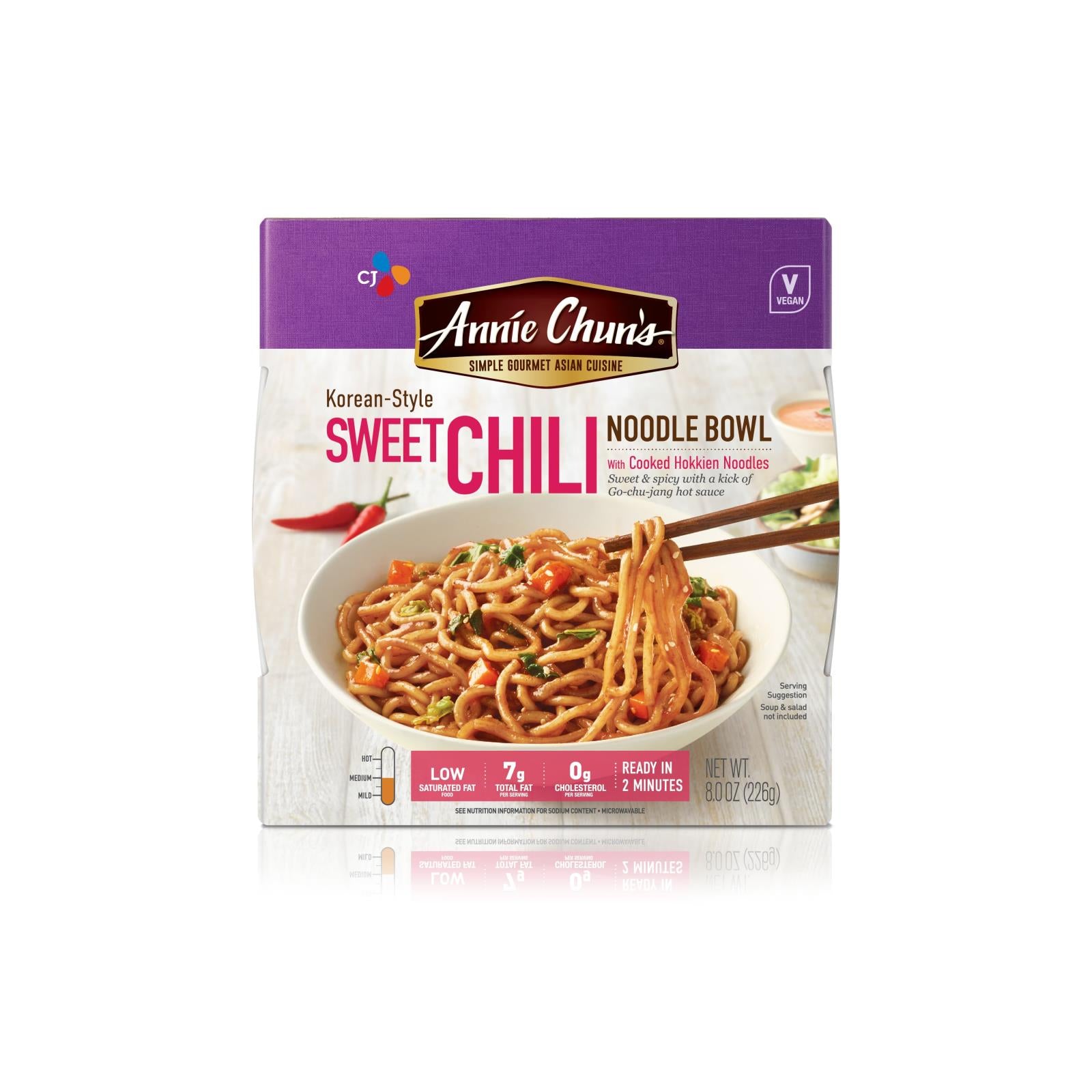 Annie chun's noodle bowls are the perfect way to enjoy your favorite asian dishes at home or on the go. Our carefully crafted recipe combines our hot and sweet gochujang sauce and cooked hokkien noodles with carrots and bok choy to make this a complete meal. Gochujang is a korean specialty of cultured hot peppers artfully blended with onion and sesame for a delightful melange of savory, spicy and sweet flavors. Works great as a quick lunch or anytime you have a craving. Ready to eat in 2 minutes. Contains one 8 oz. Bowl. At annie chun's we believe in delicious, easy-to-prepare, asian-inspired dishes that you can feel good about. Whether you want to whip up a quick pad thai for the family, grab lunch at the office or enjoy a delicious snack on the go, we have a full range of asian-inspired options. It has never been easier to enjoy the flavors of your favorite asian cuisines in the comfort of your own home.