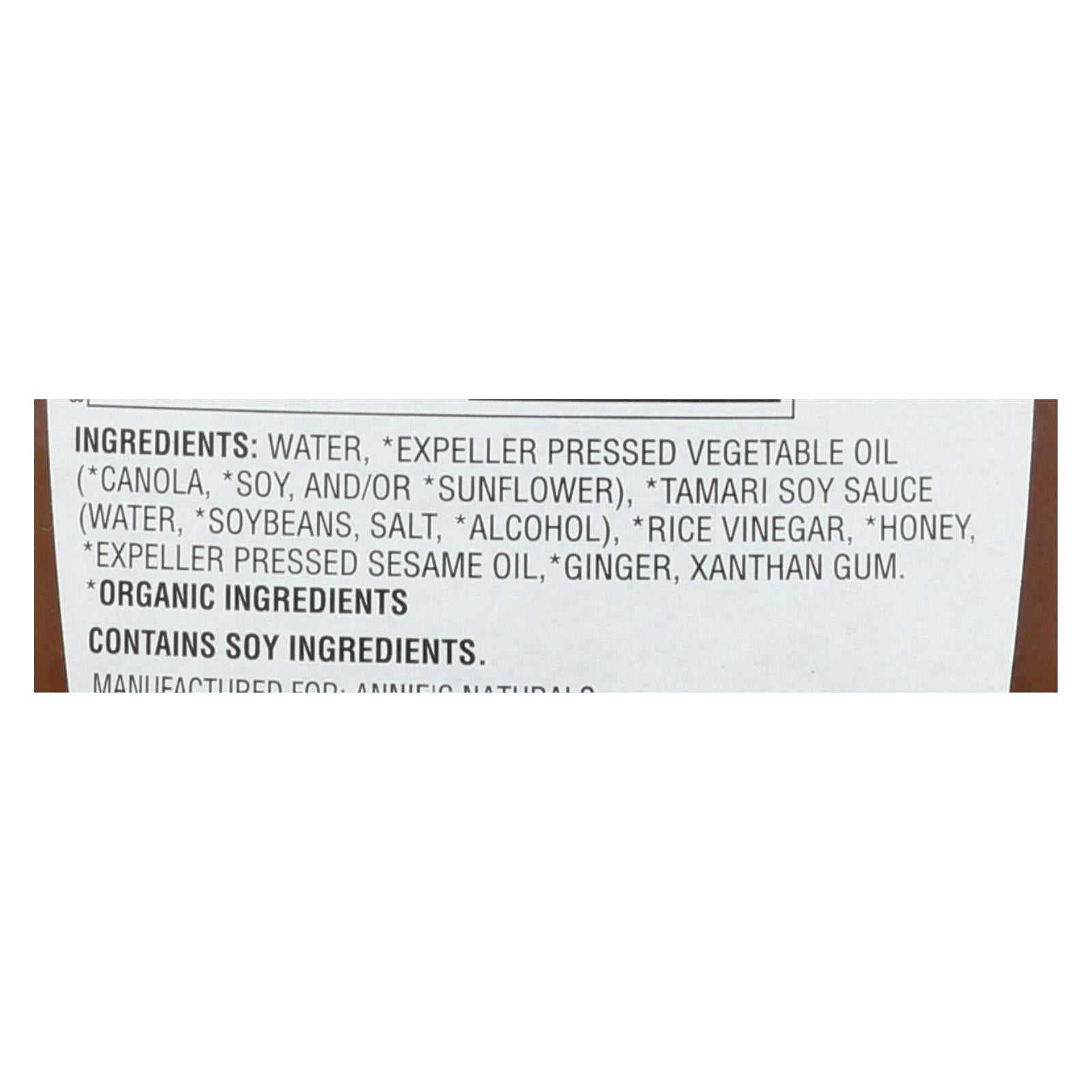 The zing of ginger is mellowed with the smoothness of sesame oil in annie's naturals organics sesame ginger vinaigrette. This indulgent dressing is great on salads and gives a kick to fresh vegetables as a dip on the side. And, it works wonders as a marinade for beef, chicken and tofu. Ingredients include tamari soy sauce rice vinegar, honey, sesame oil and ginger. We are proud to use only usda-certified organic ingredients and source only non-gmo ingredients with no artificial colors, flavors or preservatives. Plus, it’s gluten-free and vegetarian. Includes one 8 oz. Bottle of annie's naturals organics sesame ginger vinaigrette. See nutrition facts panel for allergens. Annie’s has a commitment to bettering the world through nourishing foods, honest words and conduct that is considerate and kind. From the farms we source our ingredients from all the way to the packaging our food is shipped in, we are conscious not only of your family’s health and wellness, but that of the planet.