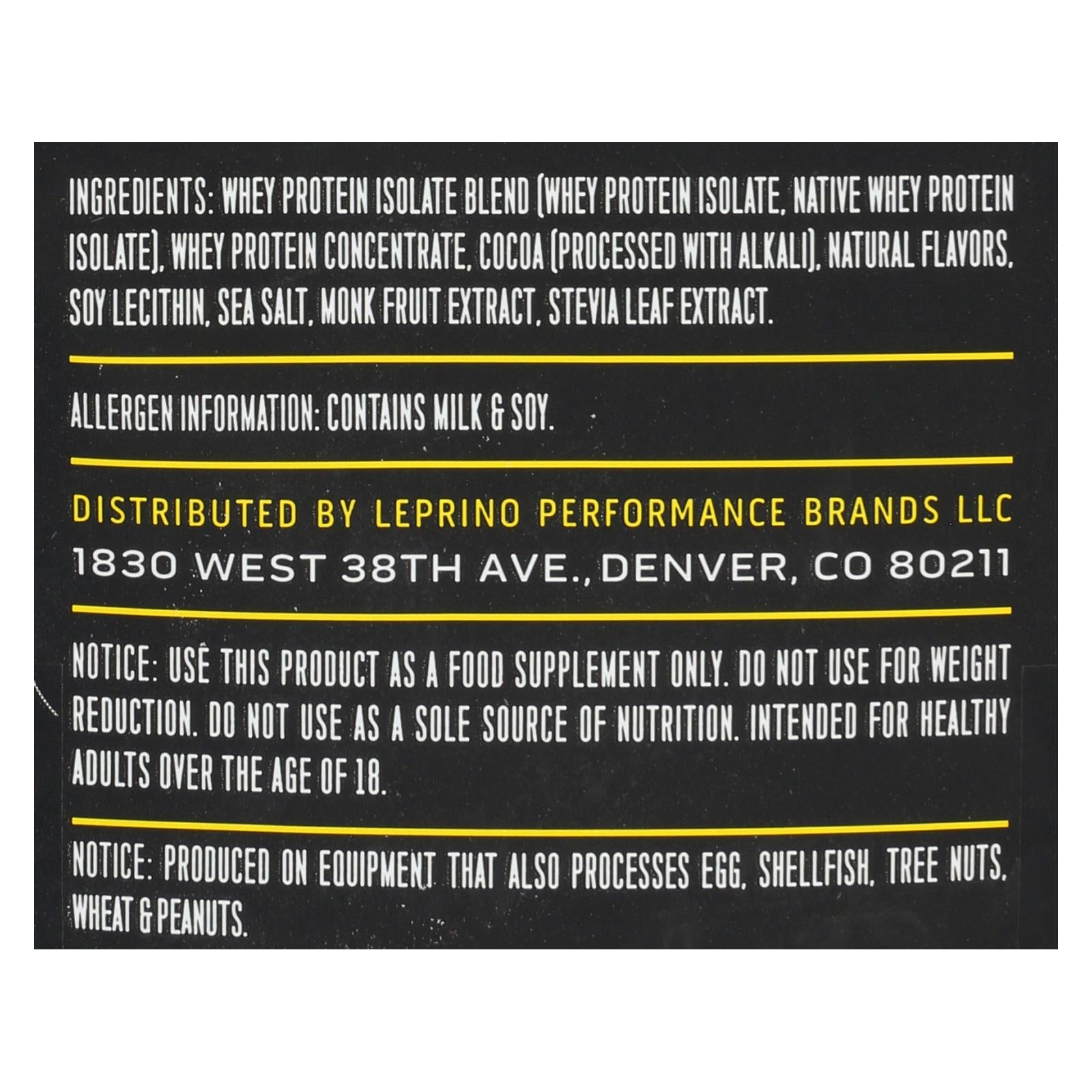 ingredients : whey protein isolate blend;native whey protein isolate;whey protein isolate;whey protein concentrate;cocoa;processed with alkali;natural flavors;sunflower lecithin;sea salt;monk fruit extract;stevia leaf extract