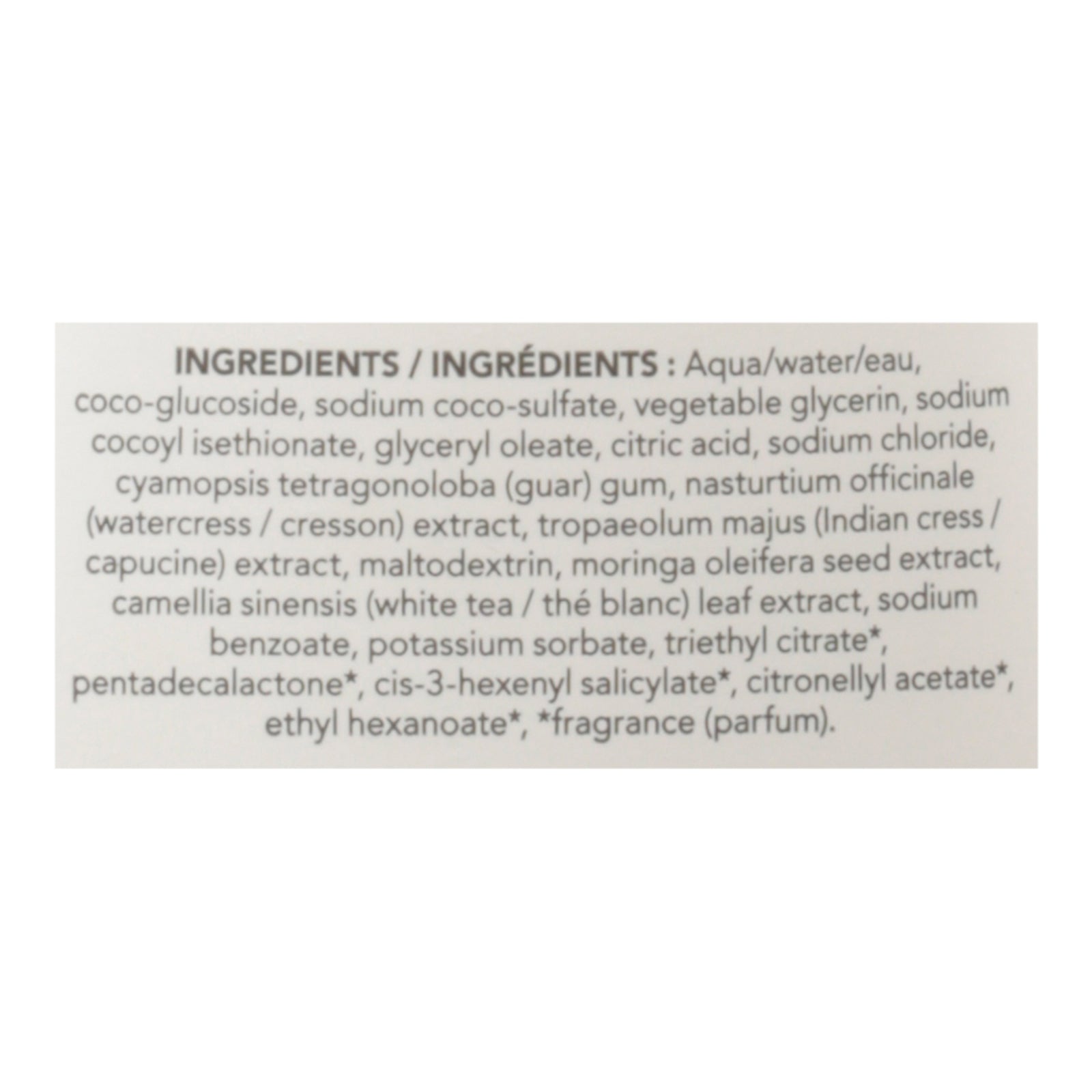 Natural care. Bio spectra. Hypoallergenic. Antipollution. Super leaves science. Watercress and indian cress super leaves are known for their regenerative abilities and for being high in minerals and vitamins. White tea leaves are recognized for their soothing, antioxidant and protective properties that promote healthy and radiant skin, from head to toe. Ingredients contained in this product decrease the adhesion of pollutants and detoxify skin. Eco-conscious. We plant trees for the planet. Ul ecologo; produced certified for reduced environmental impact. View specific attributes evaluated: ul.com/el.