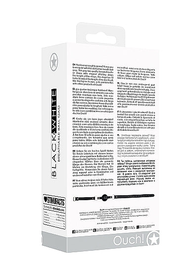 Ouch! Breathable Ball Gag Black from Shots Toys. You love a naughty game? Keep you lover quiet with this distinctive breath ball gag. This gag has quality leather straps with elegant stitching down the length of the straps. The strap has 10 holes to adjust the length. One size fits all. Use this toy on its own, or in combination with other products of Ouch! Dimensions package 6.69 inches by 3.54 inches by 1.97 inches. Weight package 3.07 ounces. Product dimensions 25.59 inches by 1.77 inches by 1.77 inches. Product weight 1.98 ounces. Product diameter 1.77 inches. Materials: Leather and ABS Plastic. Categories: Bondage, Fetish, Kink, Sex Toys for Couples, Bondage Restraints, Gags and Muzzles. 2023.