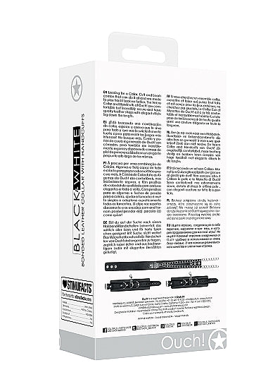 Best Fetish Brand of the Year Bonded Leather Collar With Hand Cuffs, Adjustable Straps and Chain from Shots Toys America. Looking for a Collar, Cuff and Leash combo that can do it all and are made to play hard? Look no further. The Leather Collar and Handcuffs of Ouch! are comfortable but incredibly secure and have quality leather straps with elegant stitching down the length. With straps for the cuffs and snap fasteners for the collar adjusting the size is a breeze and fits almost any size. The clip on chain holders and D-ring connectors make it possible to constraint your lover anyway you like!