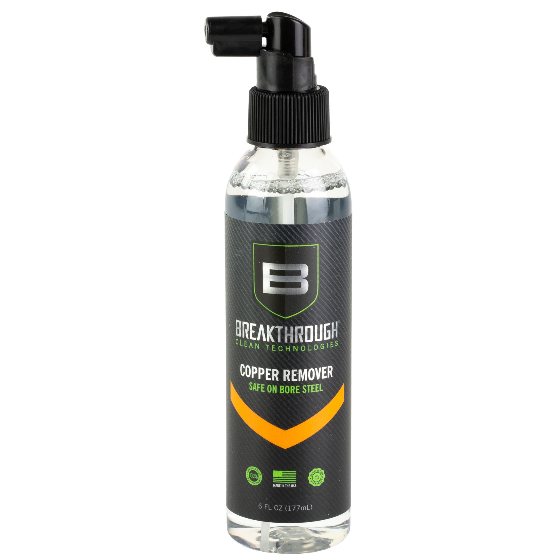 Breakthrough Cleans Copper Remover safely and effectively removes copper fouling and is 100% petroleum and ammonia free. Its virtually odorless and biodegradable formula easily removes copper fouling and minimizes future copper build up without giving off any harmful or strong offensive odors found in other copper removers. Usable on all types of bore steel and wont etch or harm the barrel.