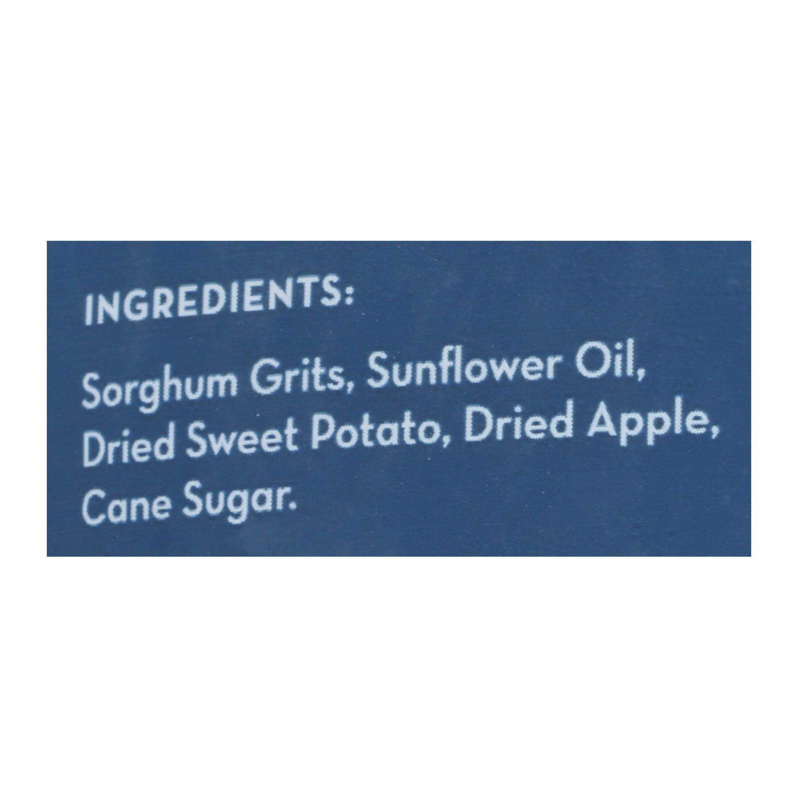 ingredients : sorghum grits;ground rice;sunflower oil;dried sweet potato;dried apple;cane sugar;mixed tocopherols (a preservative);rosemary extract