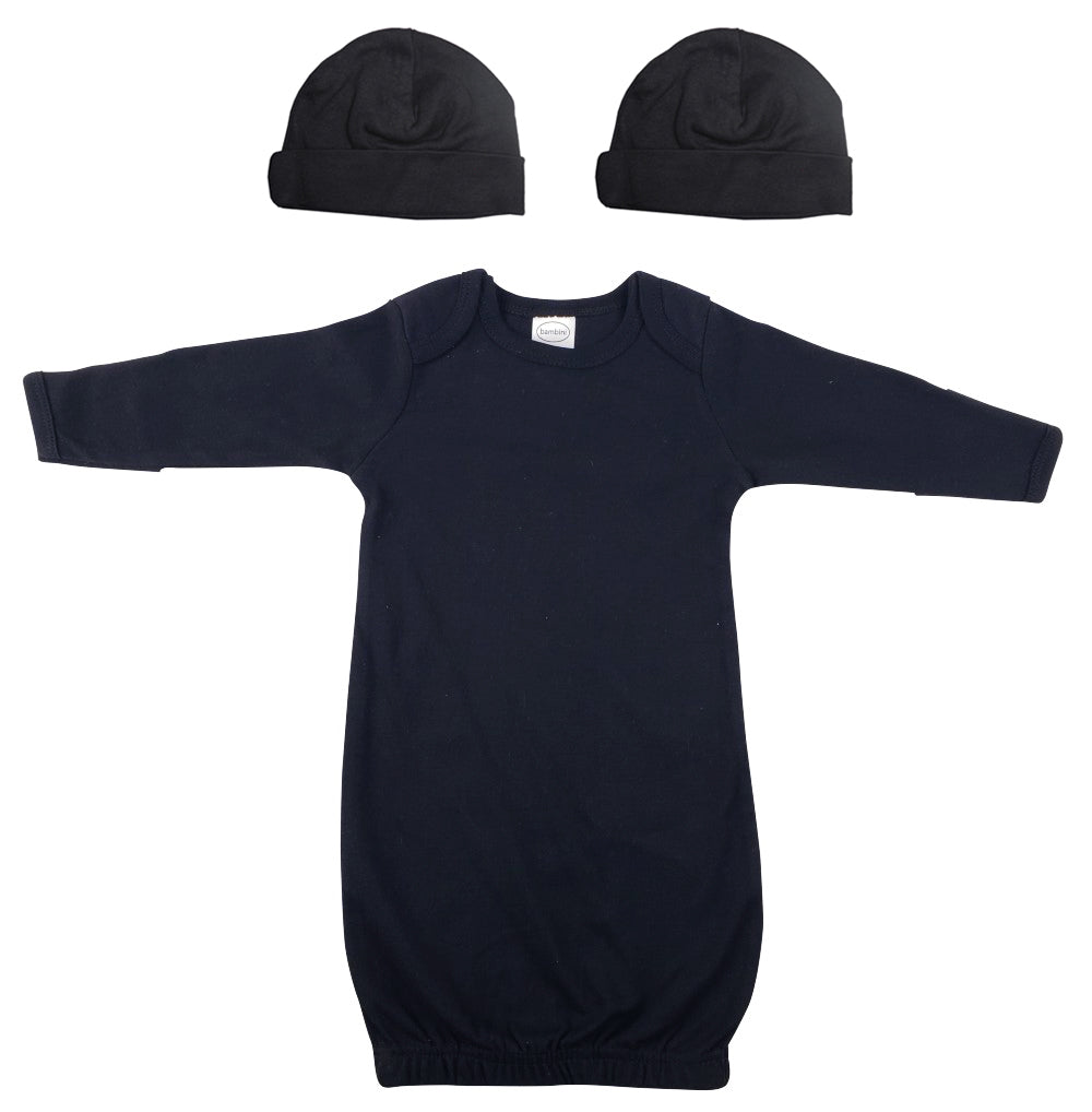 Black Infant Gown (100% Cotton), Black Baby Cap (100% Cotton), Black Baby Cap (100% Cotton)