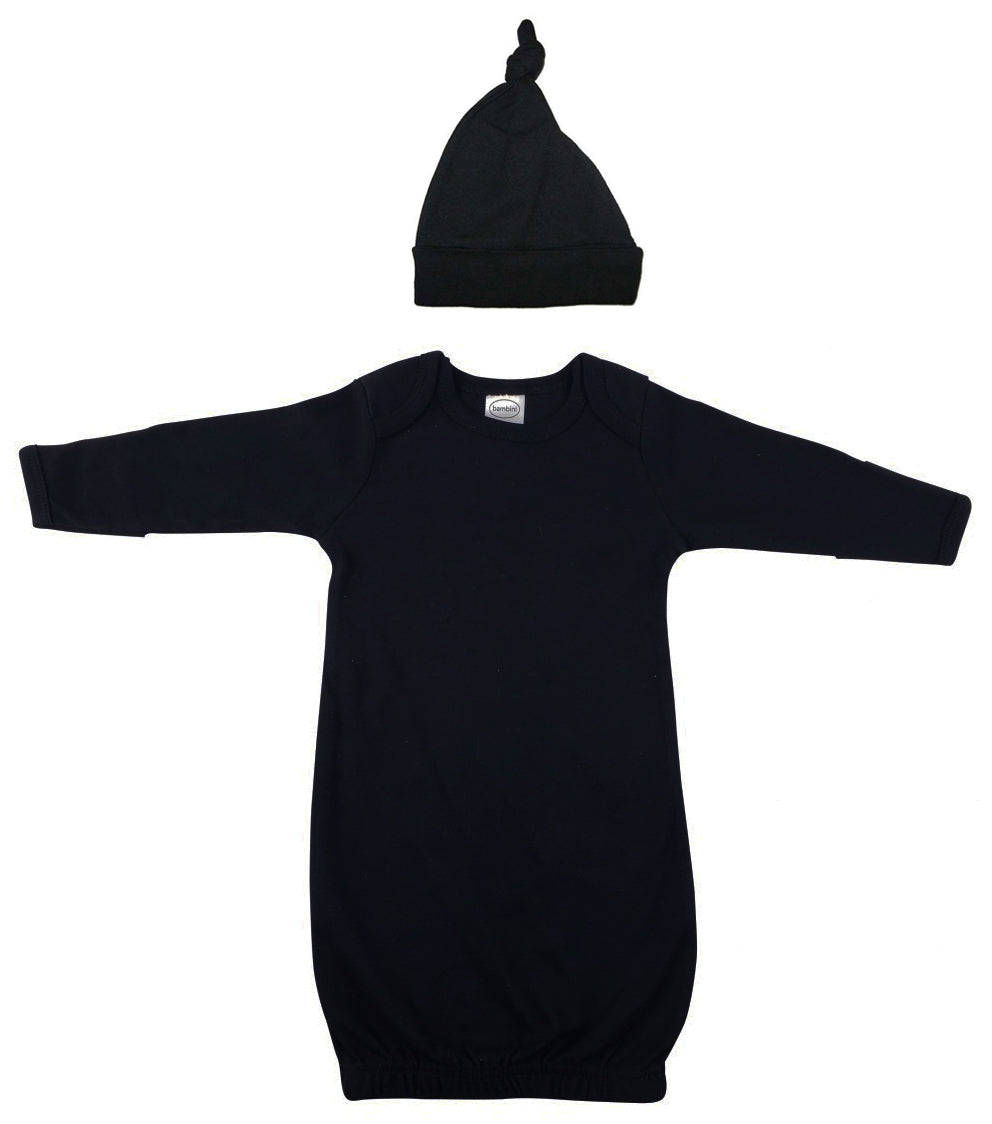 Black Infant Gown (100% Cotton), Black Knotted Baby Cap (100% Cotton)