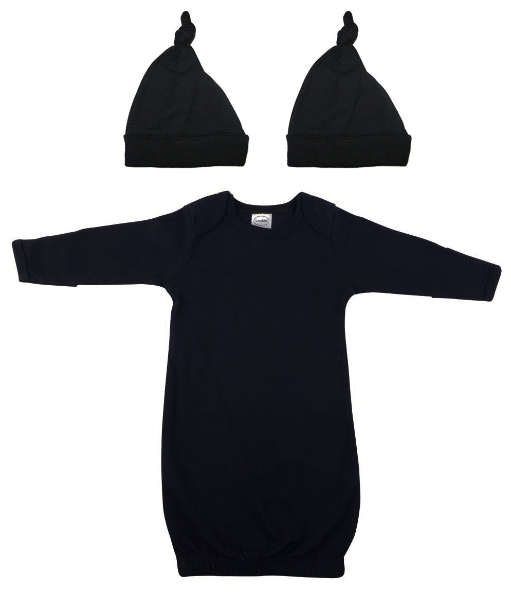 Black Infant Gown (100% Cotton), Black Knotted Baby Cap (100% Cotton), Black Knotted Baby Cap (100% Cotton)