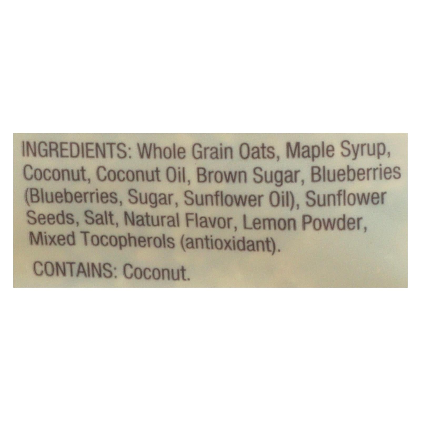 ingredients : whole grain oats;maple syrup;coconut;coconut oil;brown sugar;blueberries (blueberries, sugar, sunflower oil);sunflower seeds;salt;natural flavor;lemon powder;mixed tocopherols (antioxidant)