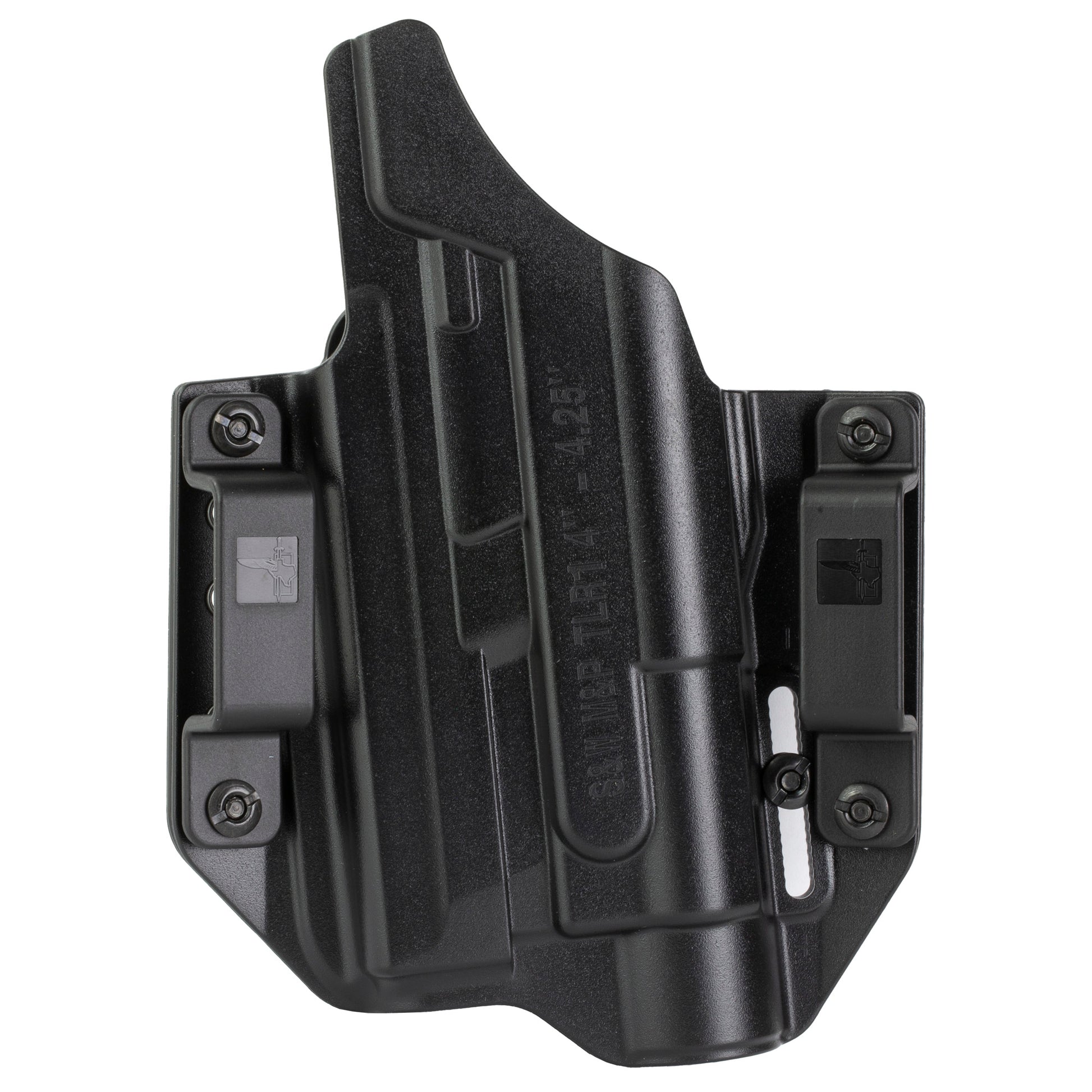 The Bravo Concealment Adaptive (BCA) OWB concealed carry holster is designed to be the best outside the waistband option for everyday concealed carry. Their outside the waistband (OWB) holster fits your gun and light combo perfectly. This is because they design their molds in-house with the latest CAD design. They 3-D scan the actual gun and build a solid off the cloud for the most precise fit within three-thousandths of an inch. Whether you open carry or conceal carry, the BCA OWB holster rides high and close to the body for maximum concealment while perfectly fitting your gun. They also have a slight curve to help wrap around the natural curvature of your waistline. Bravo holsters have a very smooth pocket for a quick and pronounced, audible click when reholstering. Since the holsters are made specifically for your gun and light, it keeps it locked and tight with no movement when wearing your gun. This keeps the finish of your gear in very good condition. Holster will not retain the pistol without the weapon light.