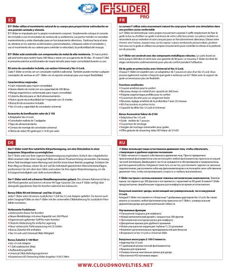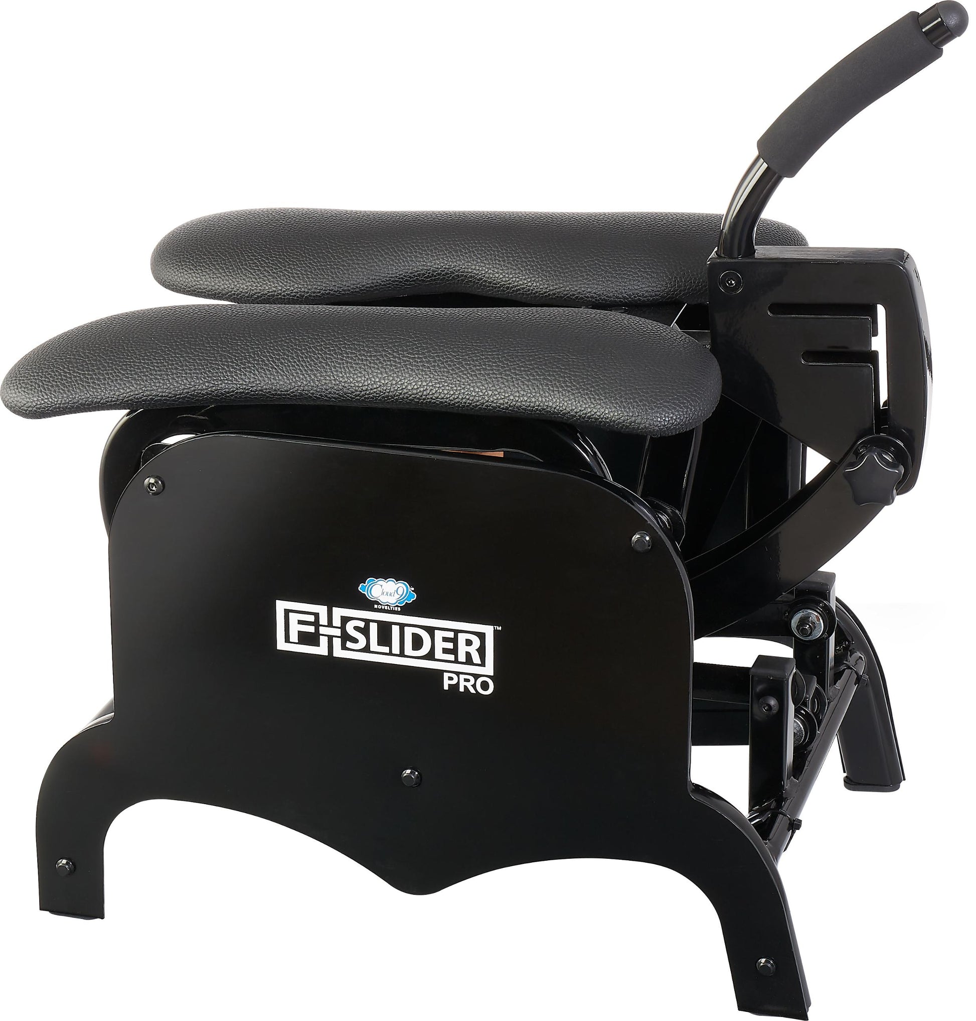 Cloud 9 F-Slider Pro Heavy Duty Self Pleasuring Chair sex machine with $100 bonus attachments including storage cover. The F-Slider uses your natural body movement to provide stimulation in a comfortable seated position. The F-Slider is powered by your own body movement. Just simply attach the included dildo or use any suction cup dildo from your private collection. The moving parts need no maintenance and are designed for silent operation. Slide your way to ecstasy, have a seat on the custom padded thigh rests, position yourself over the dildo, and use your own body movement to control the thrusting speed and depth. The F-Slider is built with heavy duty metal components. The heavy framework is tested up to 400 pounds and comes with a 90 day warranty. The new F-Slider features over sized cushioned seats for comfort during use. Bonus Dildo Kit included with both Universal and Vac-U-Lock attachments. Each F-Slider is shipped with a bonus 7 inches dildo and Vac-U-Lock adapter. You can also mount any suction cup dildo to the F-Slider with the universal dildo mount for added flexibility. Improved features: enhanced cushion for comfort. New metal design with a 400 pound weight capacity. Ergonomic contoured handle for comfort. Discreet cover for easy storage. New enhanced f-depth adjustment with 3 levels. Bonus accessory kit included. Vac-U-Lock and Universal dildo capability. Bonus accessories estimated $100 value. Vac-U-Lock adapter, 7 inches realistic dildo. Storage cover. Universal dildo mounting straps. Free HD Streaming video offer $14.95 value. Over sized box dimensions 18 inches by 21.3 inches by 18.1 inches. Shipping weight 24 pounds. 2020 Video .