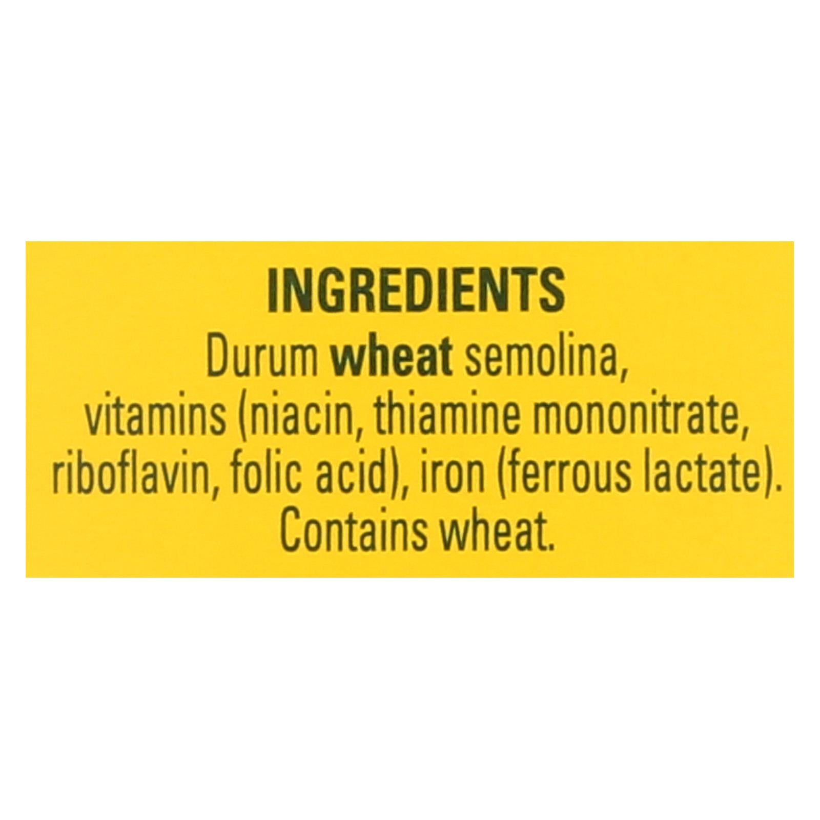 ingredients : durum wheat semolina;vitamins;niacin;thiamine mononitrate;riboflavin;folic acid;iron;ferrous lactase