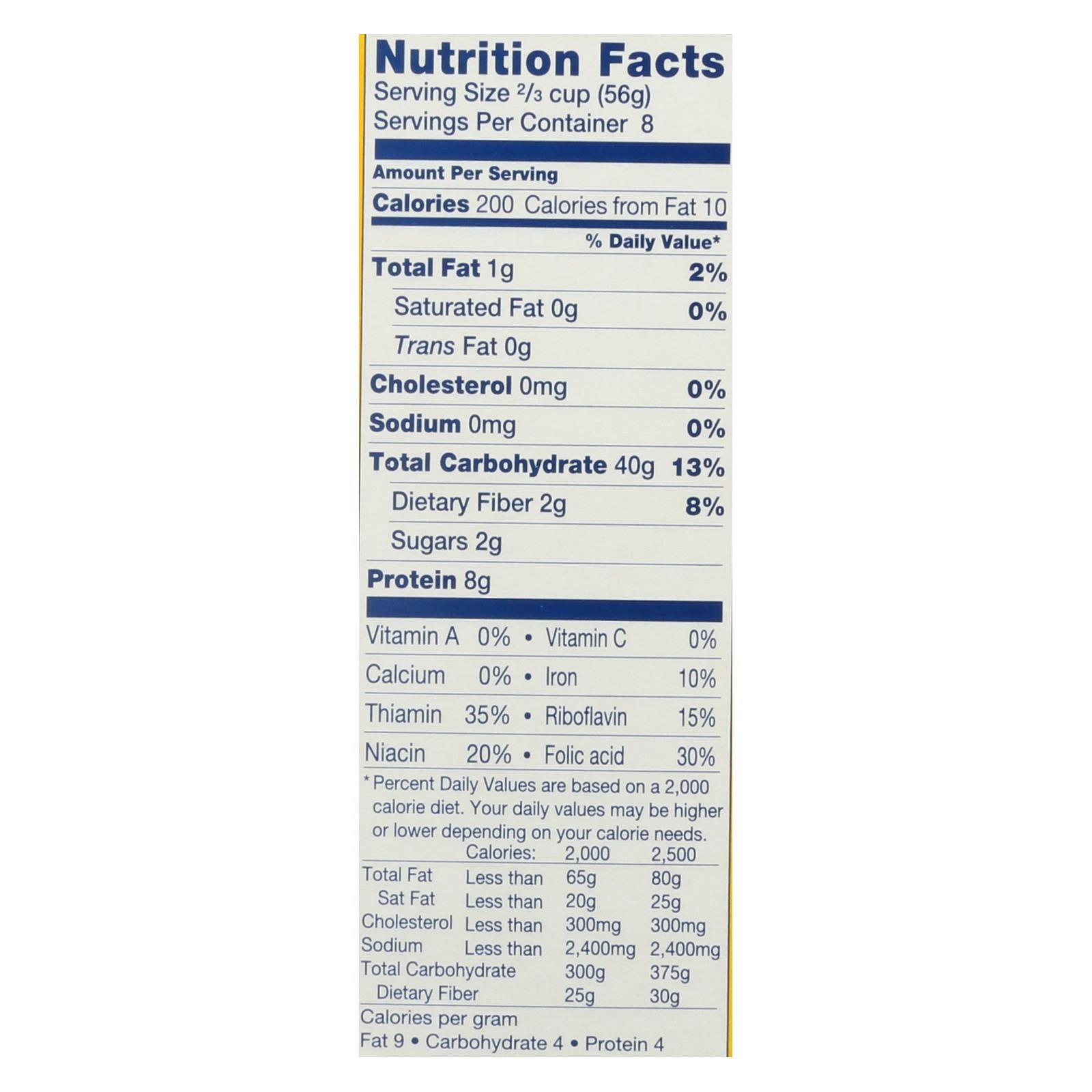 Dececco orecchiette no. 91 enriched macaroni product is made using high-quality coarse durum wheat semolina to preserve gluten integrity, and it's dried at low temperatures to retain the wheat's flavor. This enriched macaroni product cooks in nine to 11 minutes, so it's a convenient option when you need to throw together a quick dinner for your family or make a side dish to take to a party. Each 1 lb. Box of orecchiette contains approximately eight 2/3 c. Servings.