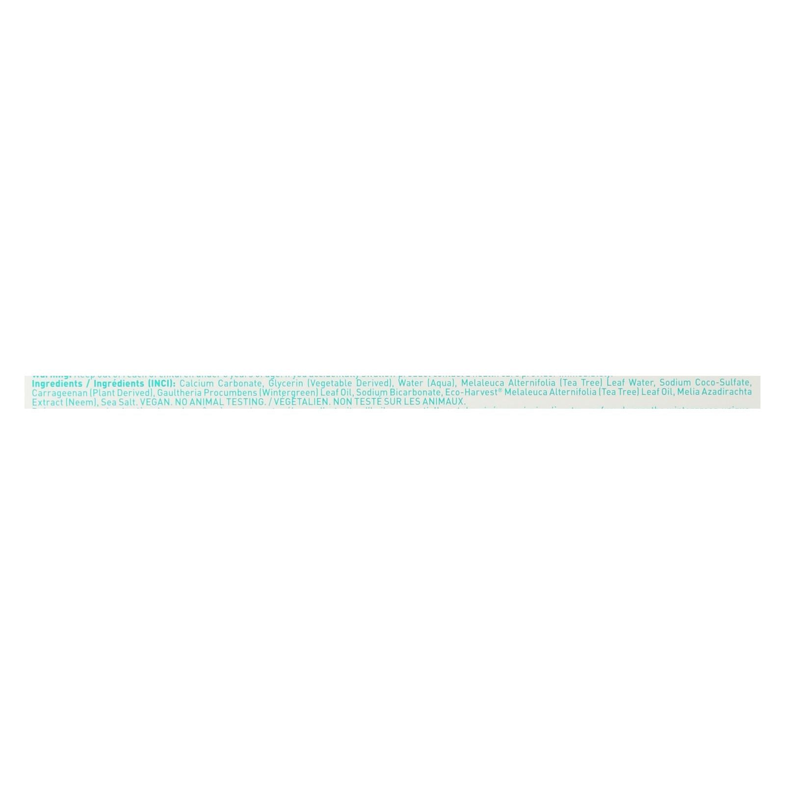 ingredients : calcium carbonate;glycerin;vegetable derived;water;aqua;melaleuca alternifolia;tea tree;leaf water;sodium coco-sulfate;carrageenan;plant derived;gaultheria procumbens;wintergreen;leaf oil;sodium bicarbonate;eco-harvest® melaleuca alternifolia;melia azadirachta extract;neem;sea salt