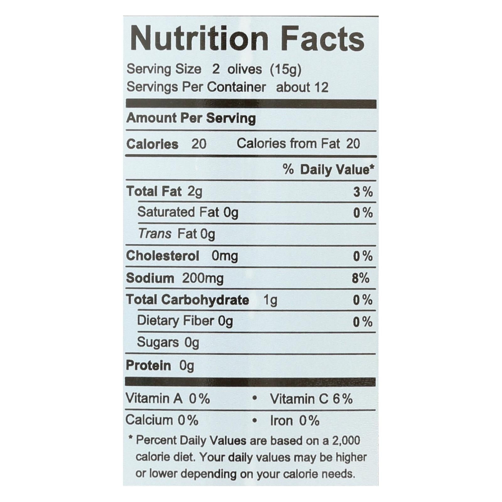 Divina, olives, stuffed with garlic are organic and non-gmo. This product comes to you in a convenient, easy-to-open 13.4 oz. Glass jar. Each two olive serving contains 20 calories and 8% of recommended daily value of sodium. Divina, olives, stuffed with garlic are a great addition to any meal, snack or vegetable tray.