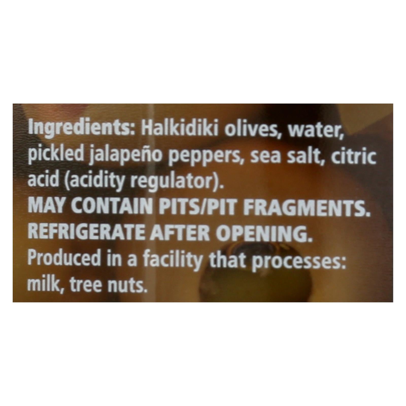 ingredients : halkidiki olives;water;pickled jalapeño peppers;sea salt;citric acid;acidity regulator