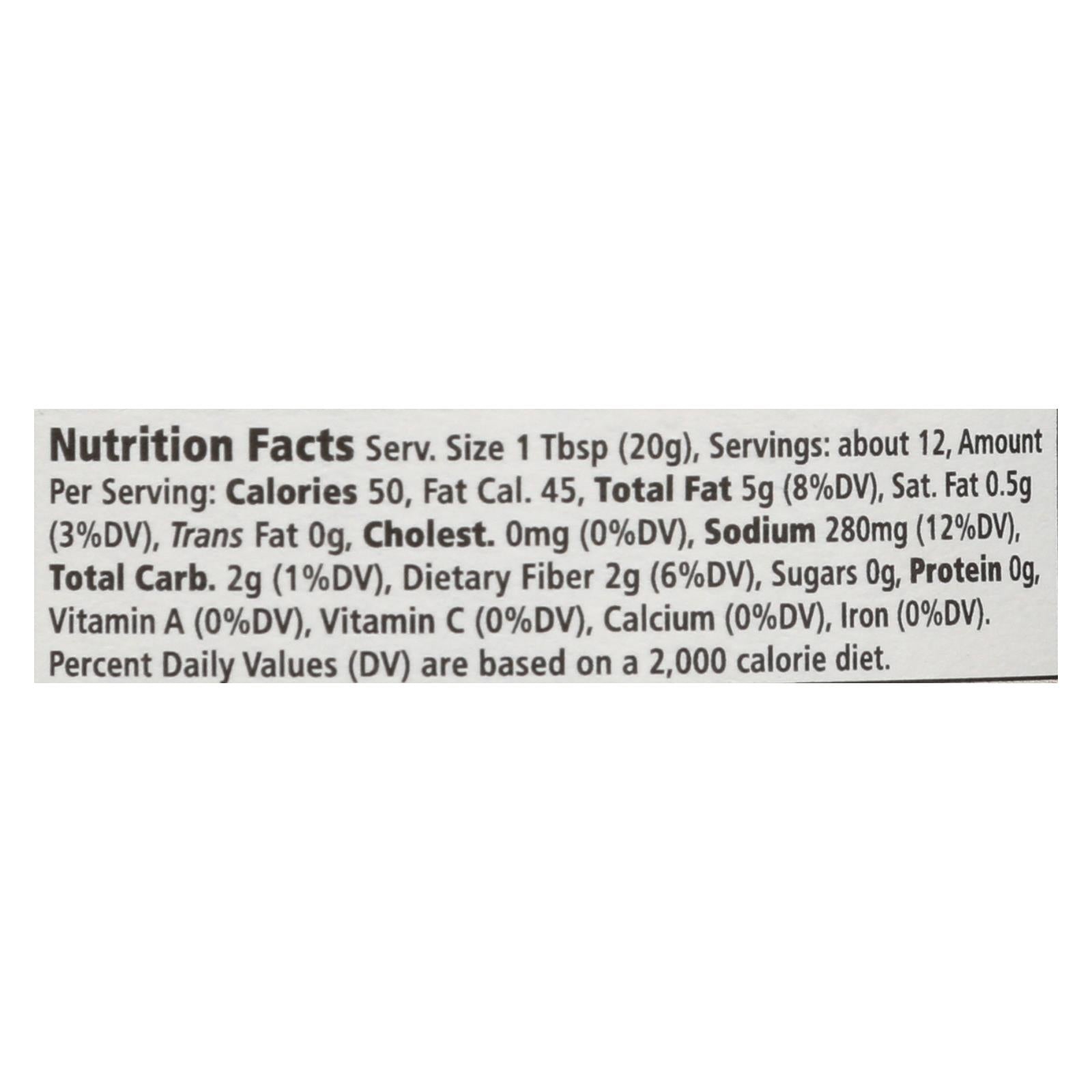 Divina, olive spread, organic kalamata are organic and non-gmo. This product comes to you in a convenient, easy-to-open glass jar. Each 1 tbsp. Serving contains 50 calories and 8% of recommended daily value of fat. Divina, olive spread, organic kalamata is best enjoyed with crusty bread and goat cheese and has a bold, fruity taste. Every cup of divina, olive spread, organic kalamata contains 8.5 oz. Of product. This product is manufactured in a facility that also processes milk and tree nuts. Please see nutritional facts panel for information concerning possible allergens or warnings associated with this product.