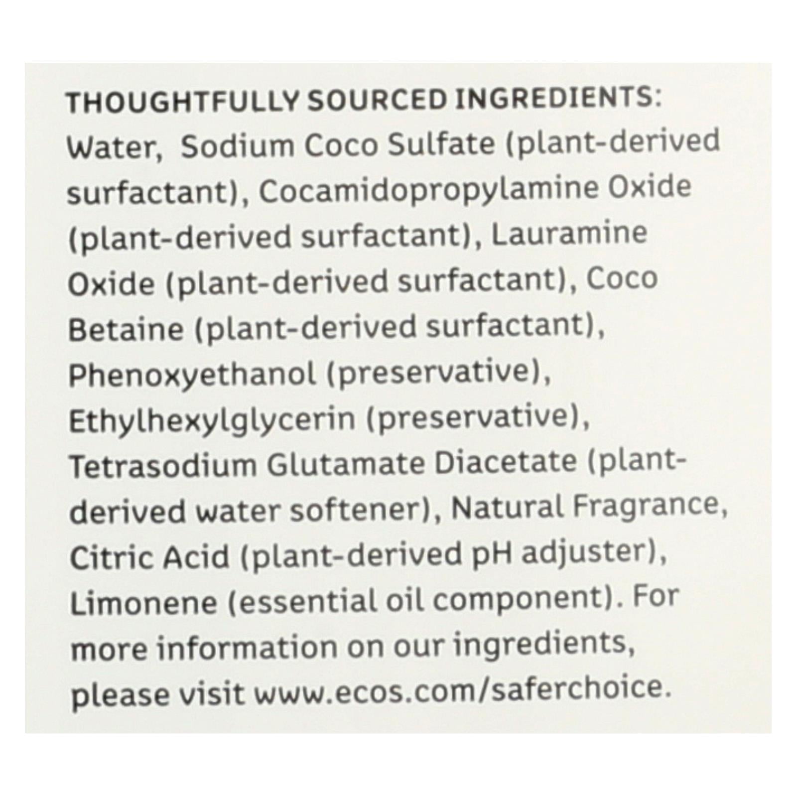 Ecos dish soap, grapefruit cuts grease and loves hands. Our formula is extraordinarily effective at cleaning dishes while softening hands. It’s positively free of formaldehyde and dyes, and it’s hypoallergenic, readily biodegradable, ph-balanced and never tested on animals. Manufactured using zero waste guidelines, this soap is made in family-owned and operated plants powered by 100% renewable energy. Wash your dishes with plant-derived goodness for a purely powerful clean. Each bottle contains 25 fl. Oz. Of soap. See the facts label for allergens and warnings.