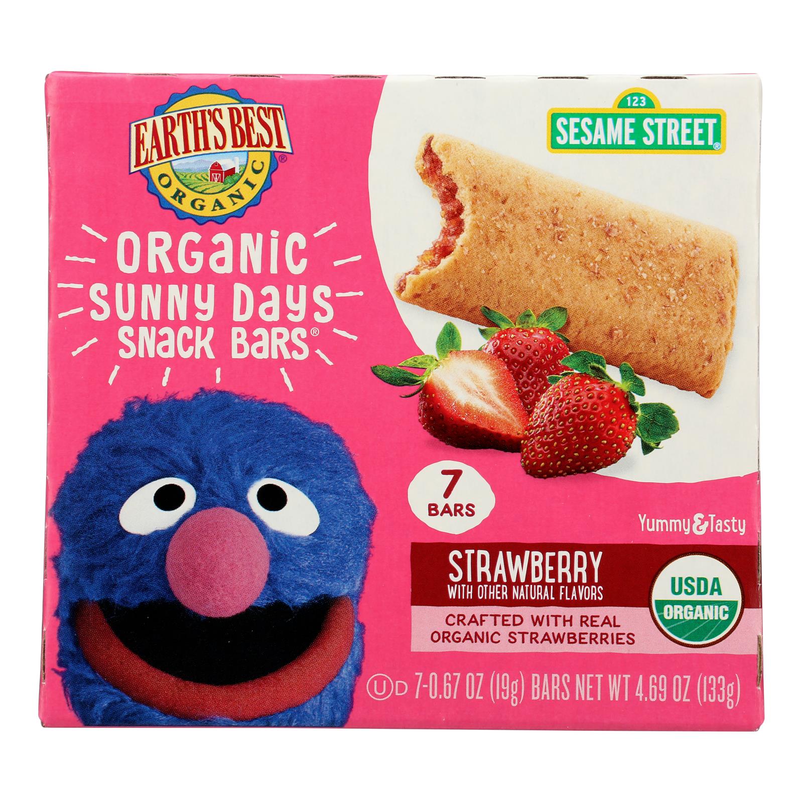 Earth’s best, sunny days snack bars, strawberry organic are simply delicious. This product is formulated with iron, zinc and six b vitamins for a wholesome snack. Earth’s best, sunny days snack bars, strawberry organic are made with real strawberries, are baked to perfection and are the perfect size for toddlers’ hands while remaining soft enough for even the most delicate mouths.this product is kosher, certified usda organic and does not contain hydrogenated oils, artificial colors, flavors or preservatives. Please see nutritional facts panel for information concerning possible allergens associated with this product.