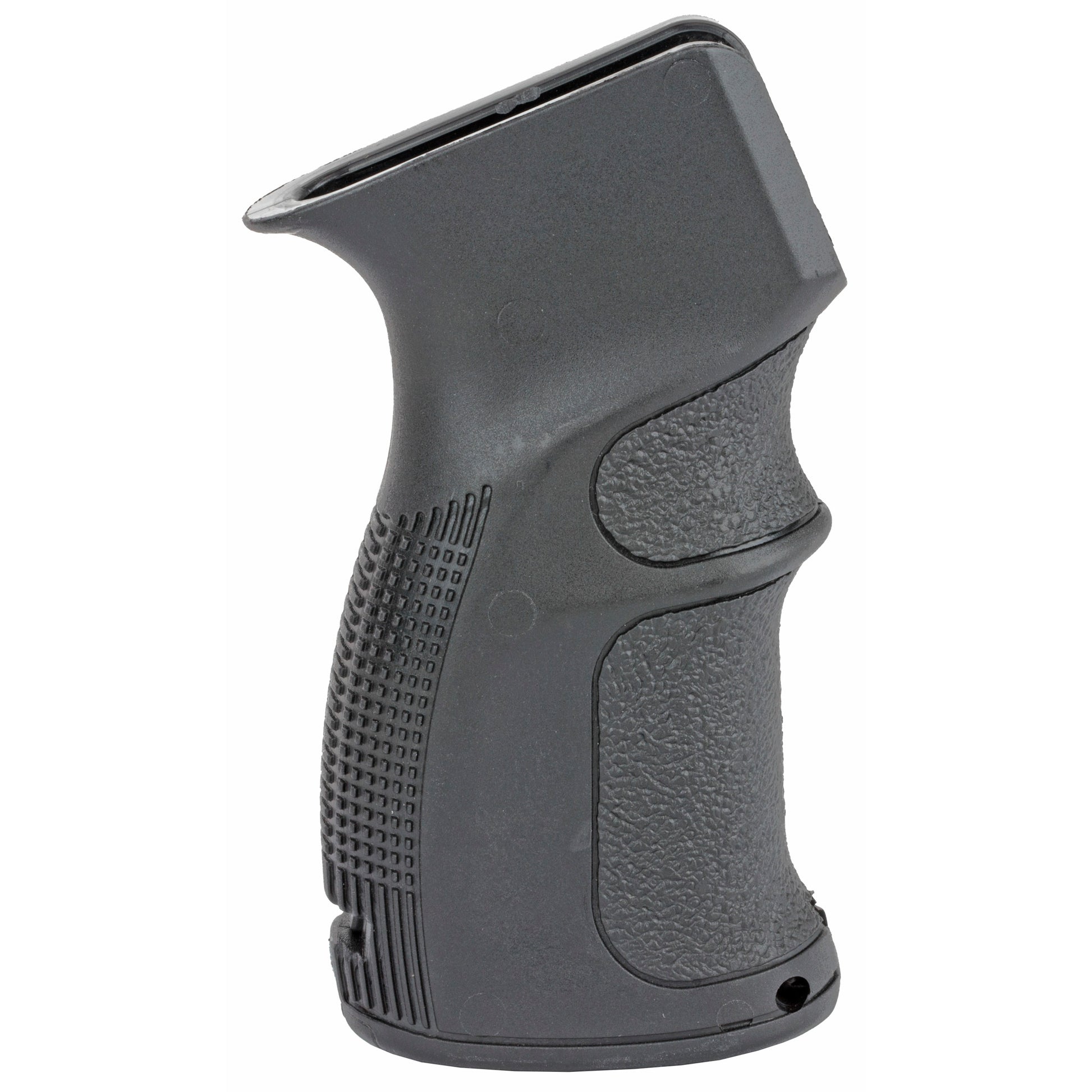 Their AG-47 Ergonomic Pistol Grip provides enhanced grip and improved weapon handling for your AK-47/74. It features a built-In storage compartment with removable 2x CR123 battery holder, finger grooves and backstrap shape for enhanced, more comfortable grip and is made of MIL-SPEC fiberglass reinforced polymer composite.