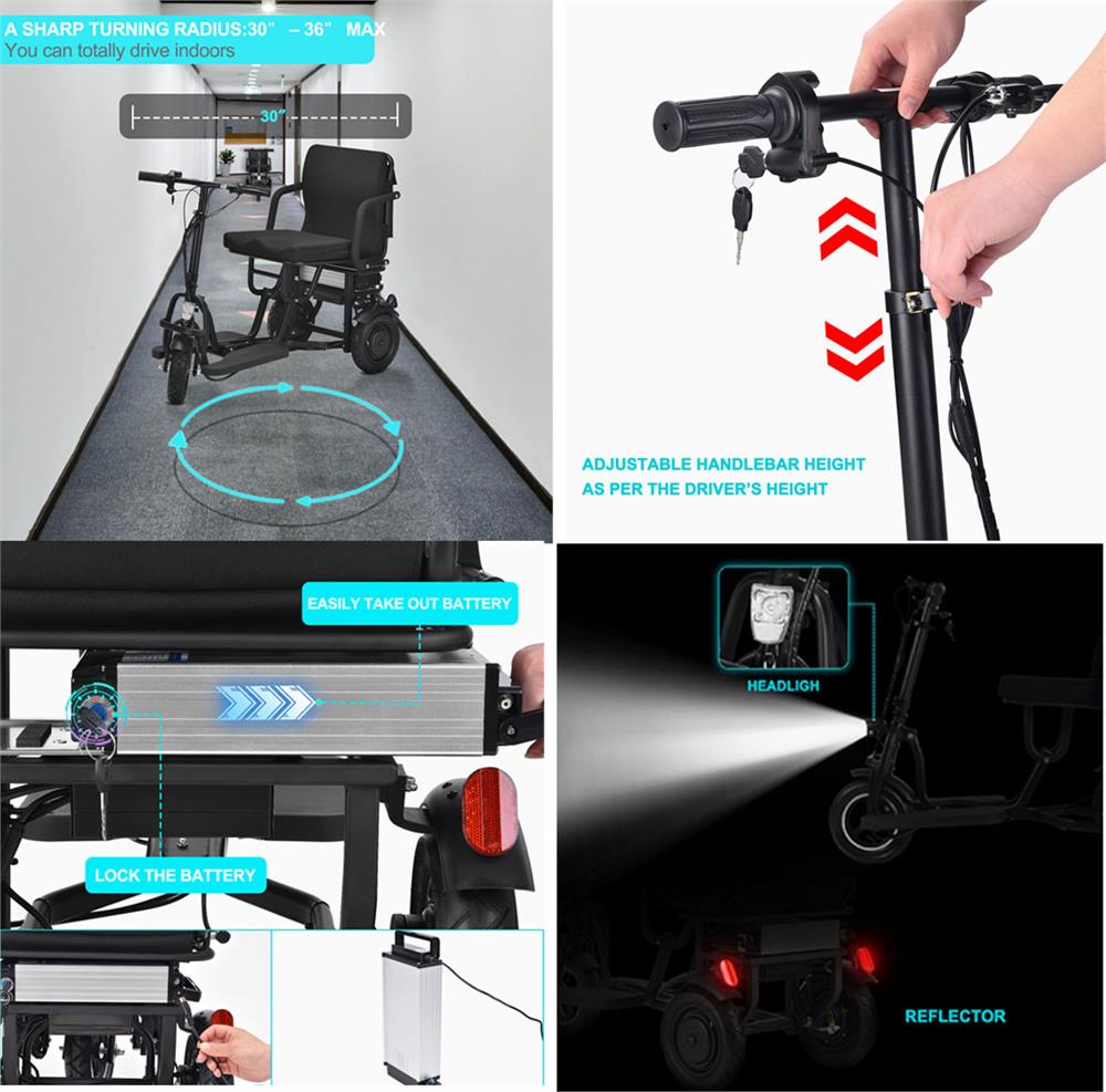 Folding Mobility Electric Trike 48v 700w Dual Motor Lithium Black