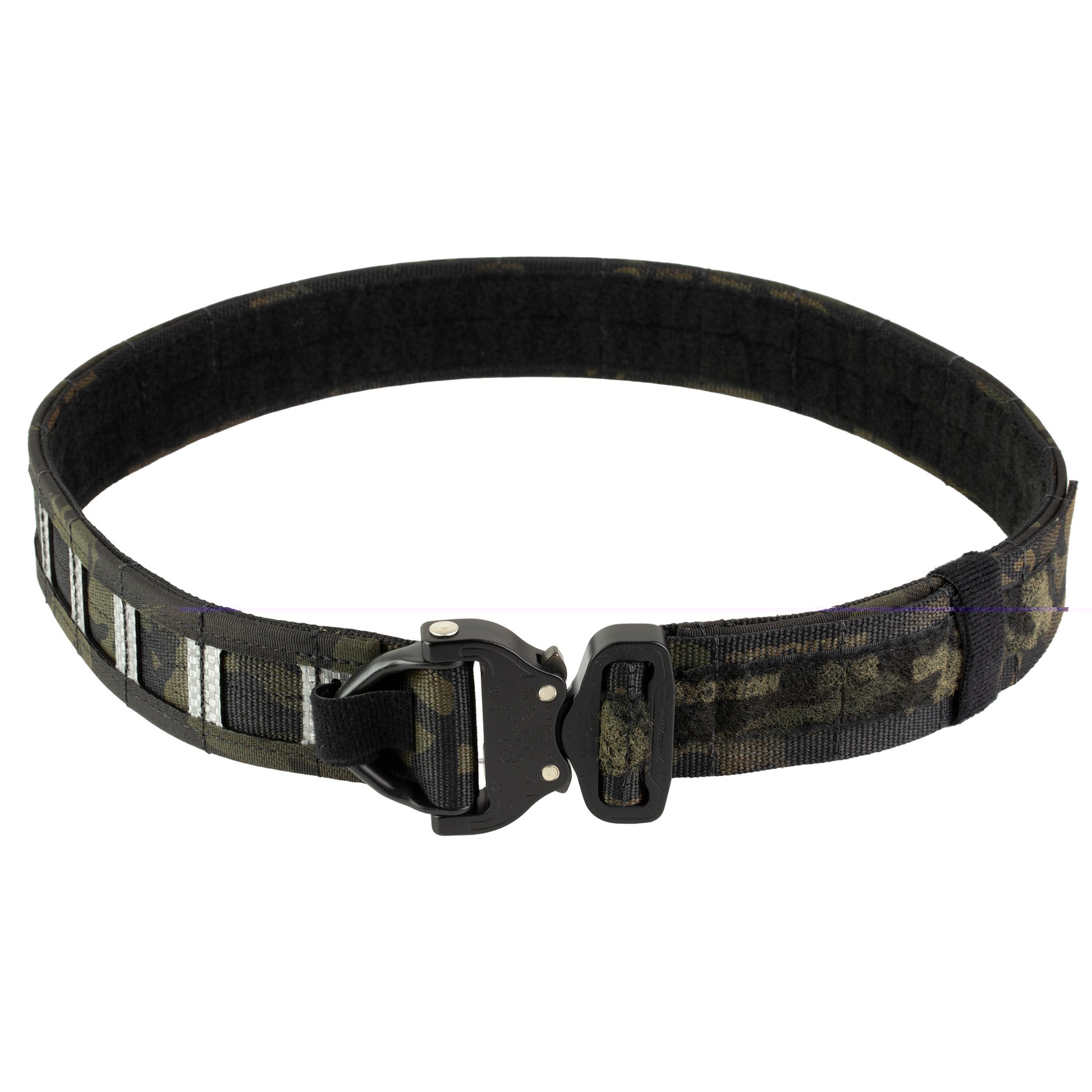 The GBRS Group Assaulter Belt utilizes a 2 belt system to create a lightweight, flexible yet rigid and stable platform to attach equipment, holsters, and accessories. This is done by using Type 13" 1-23/32" belt webbing (7000 lbs. tensile strength) as the base, with a field of PALS webbing, laser cut from a semi-rigid woven thermo-polymer. This ensures that your equipment is always secured to something rigid while allowing the belt to remain lightweight and comfortable. To round it off, GBRS double ,W, stitches the webbing to a load rated, 1.75" Austrialpin Cobra buckle with a D-ring for attaching helo lanyards and other equipment. The outer belt has an inner facing of ,loop, style Velcro, to attach to a low profile ,hook, inner belt. This is done because hooks should never be worn towards the body, especially in such a high-wear area (belt line). The inner belt system consists of a low profile ,hook, inner belt with a single layer of 1.5" scuba webbing. This results in a system that doubles as a non-metallic EDC belt and is a comfortable and convenient way to cover the abrasive hook portion of the inner belt when flipped inside out. The single layer of scuba webbing allows for a rigid surface for IWB holsters to secure firmly.