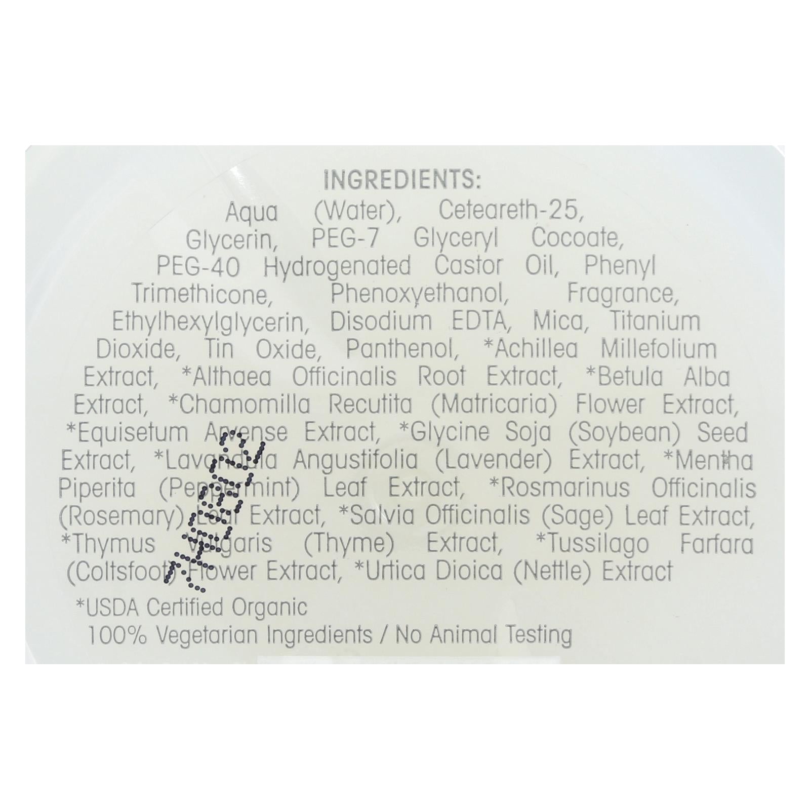 ingredients : aqua;water;ceteareth-25;glycerin;peg-7 glyceryl cocoate;peg-40 hydrogenated castor oil;phenyl trimethicone;phenoxyethanol;fragrance;ethylhexylglycerin;disodium edta;mica;titanium dioxide;tin oxide;panthenol;achillea millefolium extract;althaea officinalis root extract;betula alba extract;chamomilla recutita;matricaria;flower extract;equisetum arvense extract;glycine soja;soybean;seed extract;lavandula angustifolia;lavender;extract;mentha piperita;peppermint;leaf extract;rosmarinus officinalis;ro
