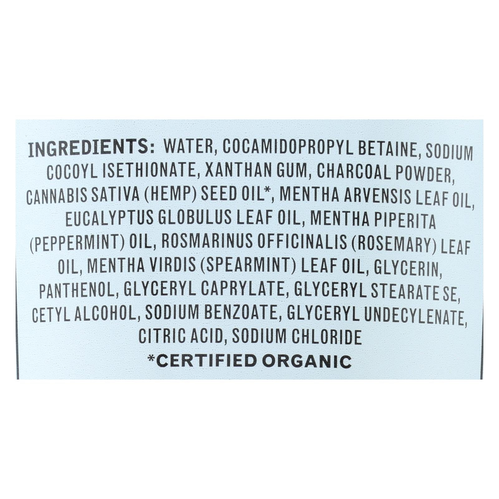 ingredients : water (aqua);cocamidopropyl betaine;sodium cocoyl isethionate;glyceryl stearate se;charcoal powder;cannabis sativa (hemp) seed oil;mentha arvensis leaf oil;eucalyptus globulus leaf oil;mentha piperita (peppermint) oil;rosmarinus officinalis (rosemary) leaf oil;mentha virdis (spearmint) leaf oil;glycerin;panthenol;xanthan gum;cetyl alcohol;sodium benzoate;benzyl alcohol;benzoic acid;sorbic acid;citric acid;sodium chloride