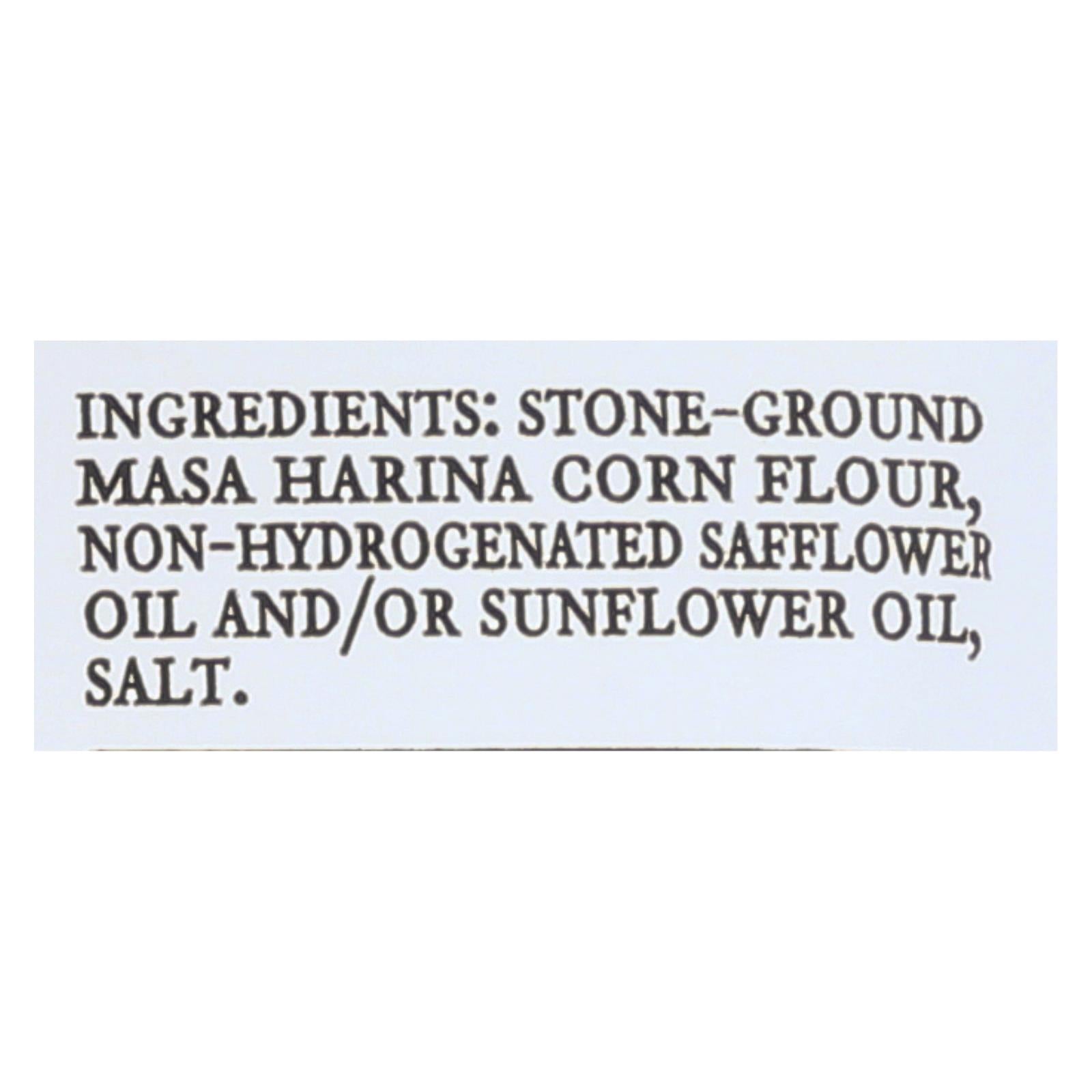 ingredients : stone-ground masa harina corn flour;non-hydrogenated safflower oil and/or sunflower oil;salt