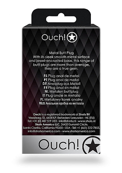 Ouch! Heart Gem Butt Plug Small Silver *Rubellite Pink from Shots Toys. Fetish brand of the year. With its sleek smooth metal surface and jewel encrusted base, this range of butt plugs are more than average, they are a true gem. Wear it just for yourself or while having fun with your partner, the tapered tip allows easier insertion while the flared base ensures piece of mind while in use. Enter a whole new world of sensations and stimulation, the world of temperature play combined with the beauty and pleasure of our Ouch! Aluminum Butt Plugs with Jewels.