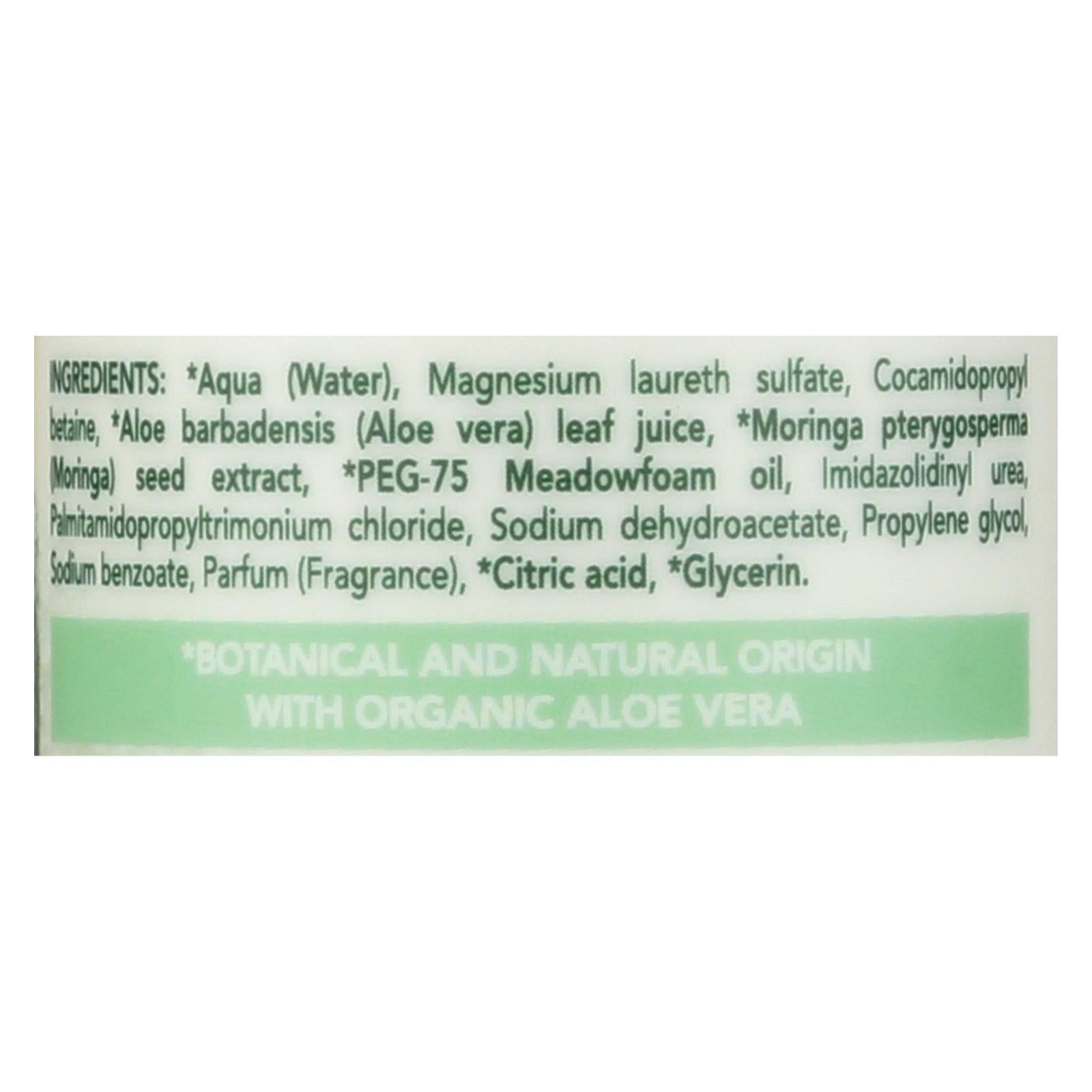 ingredients : aqua;water;magnesium laureth sulfate;cocamidopropyl betaine;aloe barbadensis;aloe vera;leaf juice;moringa pterygosperma;moringa;seed extract;peg-75 meadowfoam oil;imidazolidinyl urea;palmitamidopropyltrimonium chloride;sodium dehydroacetate;propylene glycol;sodium benzoate;parfum;fragrance;citric acid;glycerin