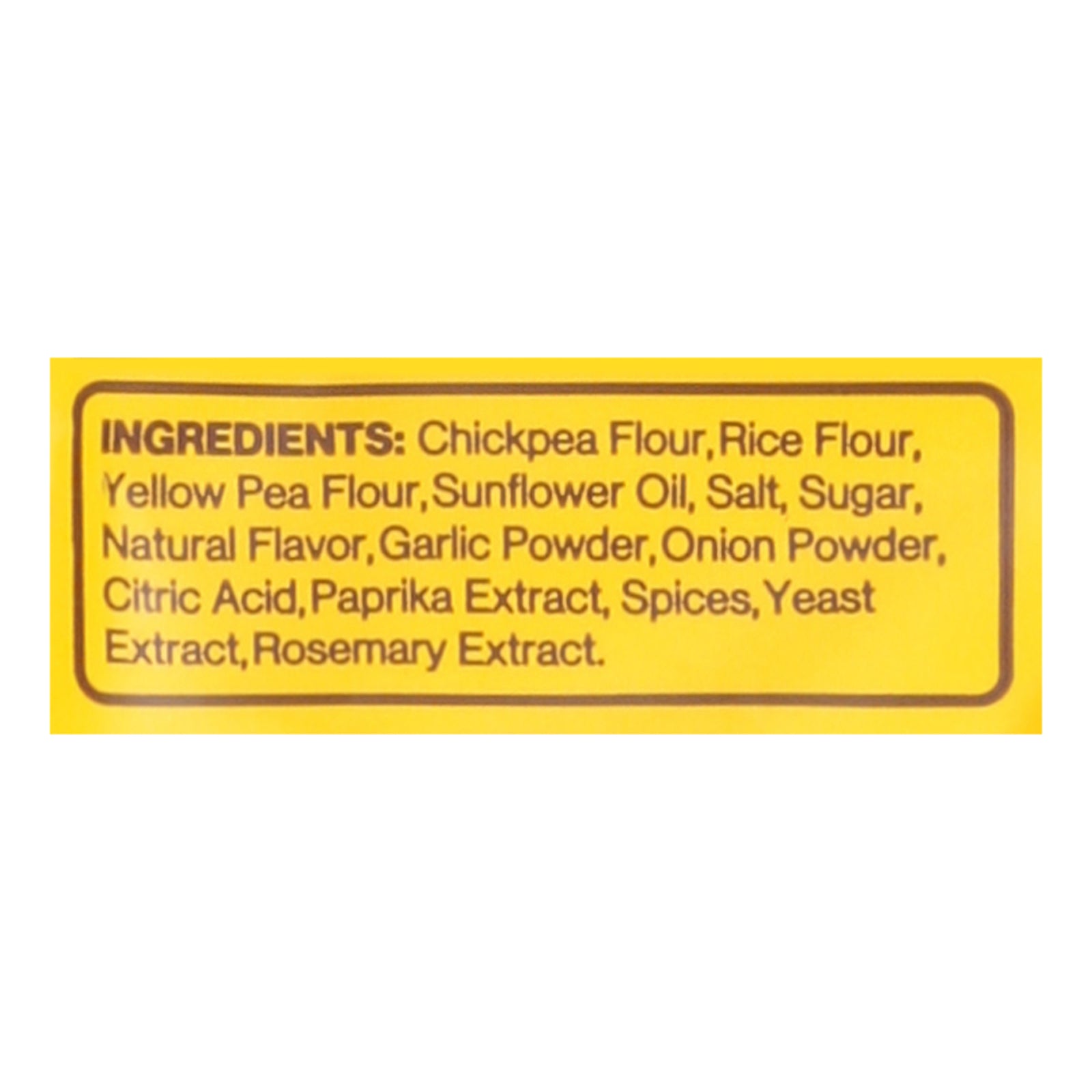 ingredients : chickpea flour;rice flour;yellow pea flour;sunflower oil;salt;sugar;natural flavor;garlic powder;onion powder;citric acid;paprika extract;spices;yeast extract;rosemary extract