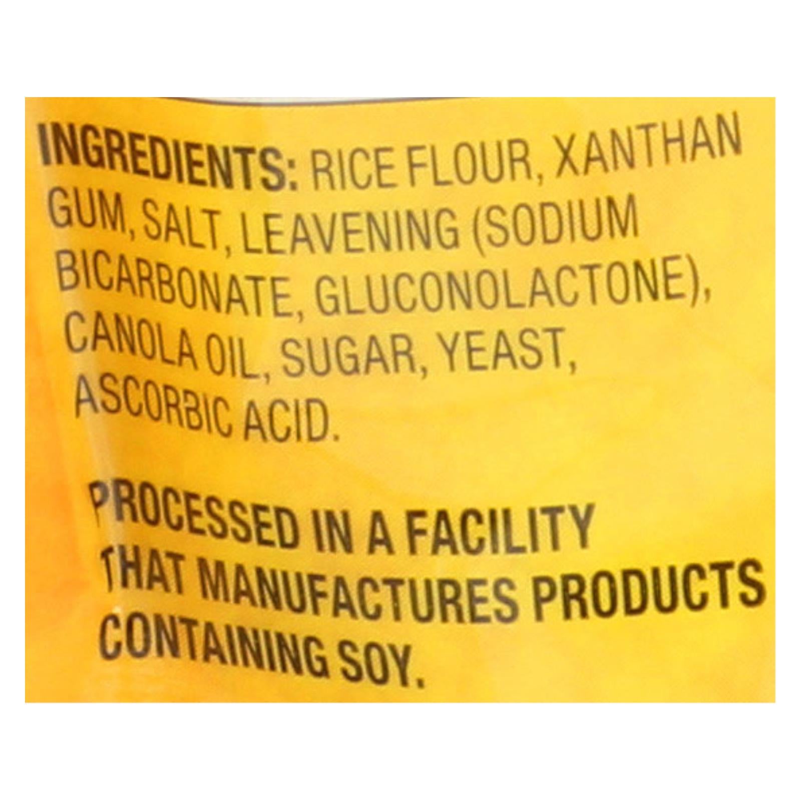 ingredients : rice flour;xanthan gum;salt;leavening;sodium bicarbonate;gluconolactone;canola oil;sugar;yeast;ascorbic acid
