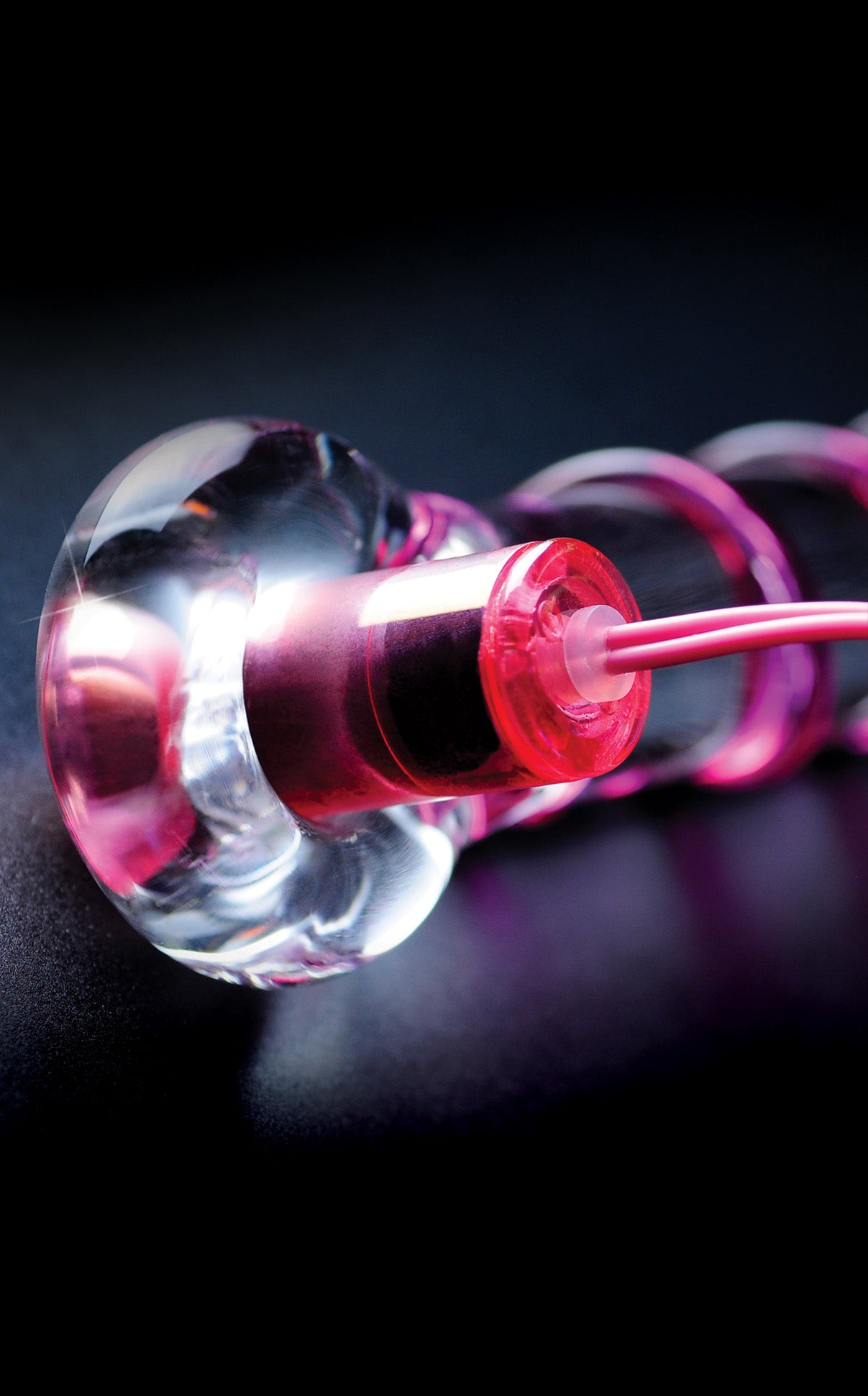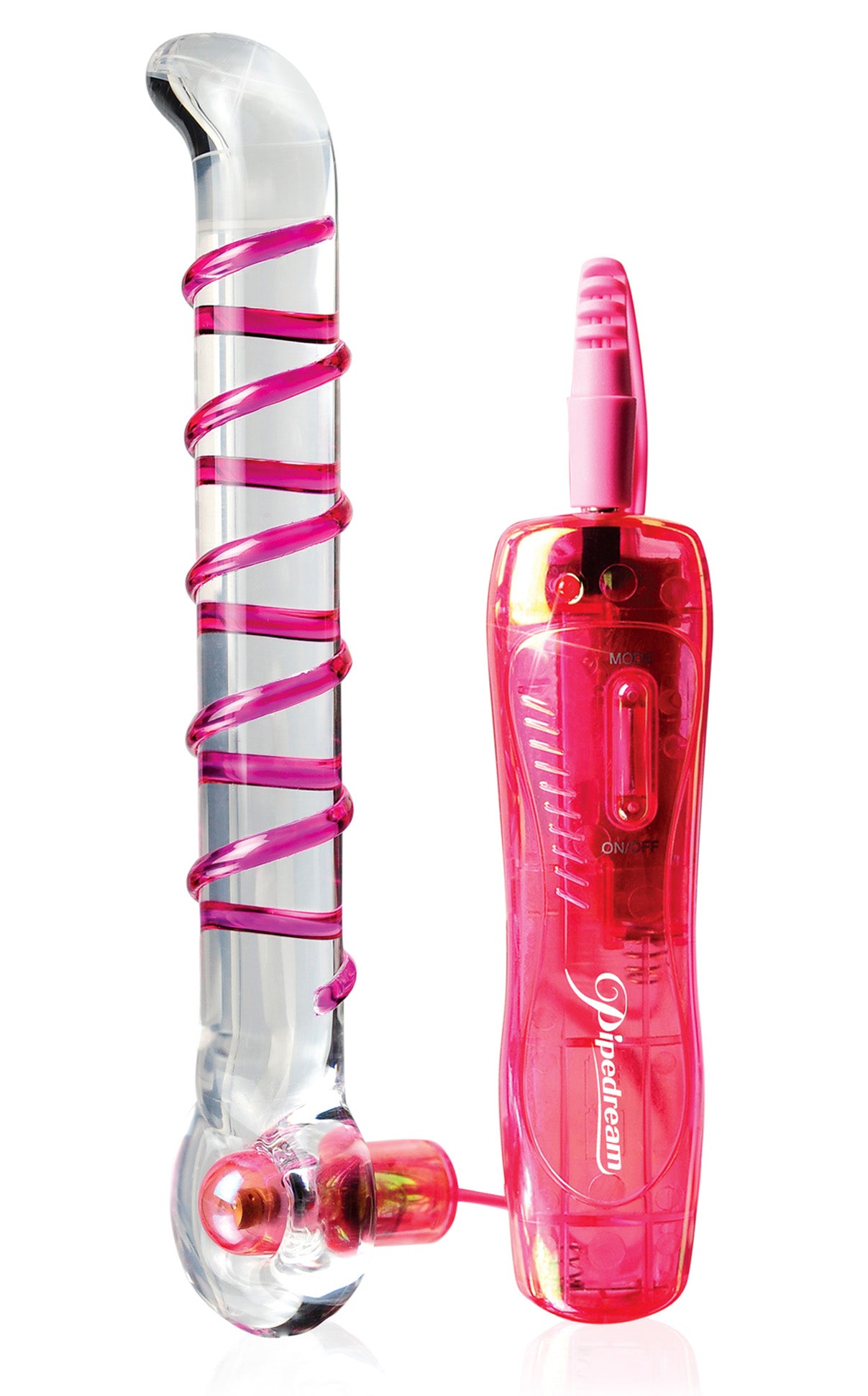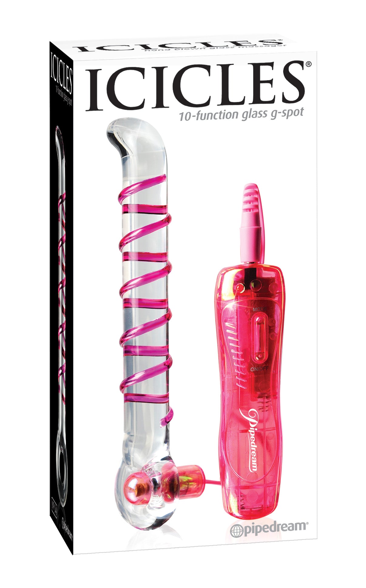 Icicles No. 4 is a 10-Function Glass G-Spot Vibrating Wand. Elegant, upscale, and hand-crafted with amazing attention to detail, this luxurious line of glass massagers will leave you breathless. The shaft comes with an almost smooth shaft a single slender pink ribbon decorates the center and creates a ribbed surface. Color coordinated ribbon matches the power supply plus bullet vibrator. Each hand-blown Icicle glass wand is sleek, unique, and made to play hard. The hypoallergenic glass is nonporous and body safe, and when cared for properly, is designed to last a lifetime. Run the wand under warm water or place it in the microwave to heat things up. Remove bullet prior to microwave. Do not microwave bullet vibrator or power supply. Chill, probe only, under cold water or put it in the freezer for a cool sensation. Since glass is nonporous, cleanup is a snap. Use Pipedream Toy Cleaner and warm water, or throw it in the dishwasher for a worry-free wash after the fun.