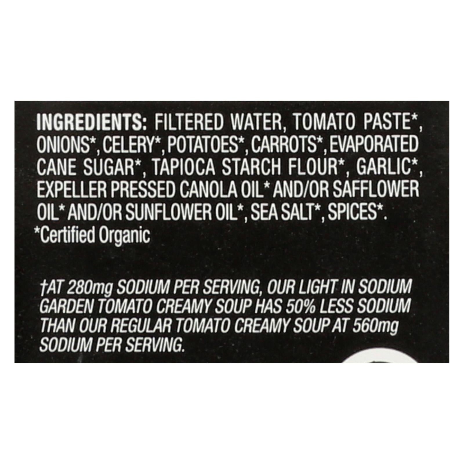 Imagine foods soup, creamy garden tomato low salt organic is a creamy, carefully blended soup that starts with fine farm-grown vegetables harvested at the peak of freshness and blended with select herbs and spices. This soup is gluten-free, kosher, non-gmo, organic and vegan. There are no preservatives or artificial ingredients. Each carton contains 32 fl. Oz. Of product.