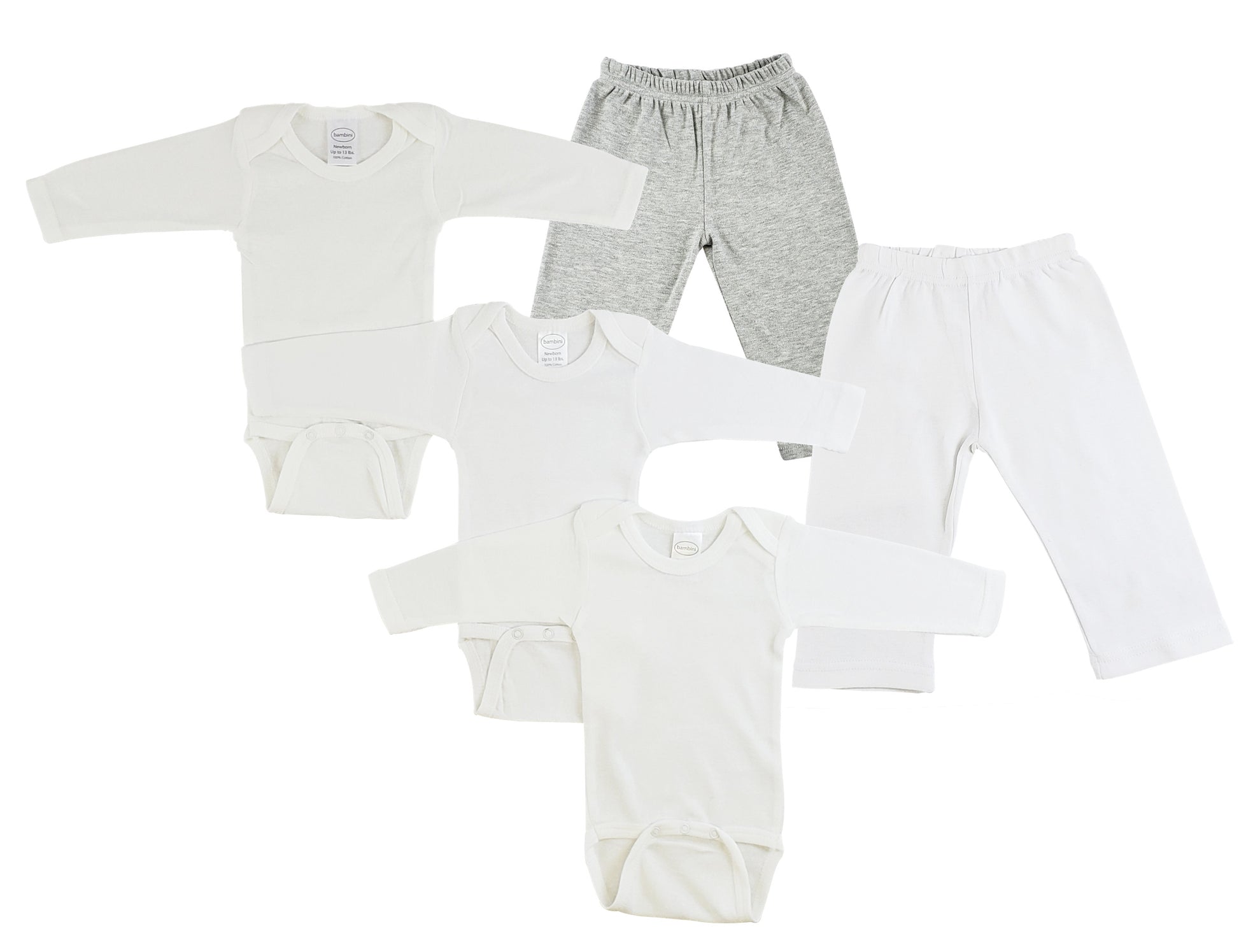 Heather Grey Pants (100% Cotton), Track Sweatpants (100% Cotton), White Longsleeve Onezie 3 Pack (100% Cotton)