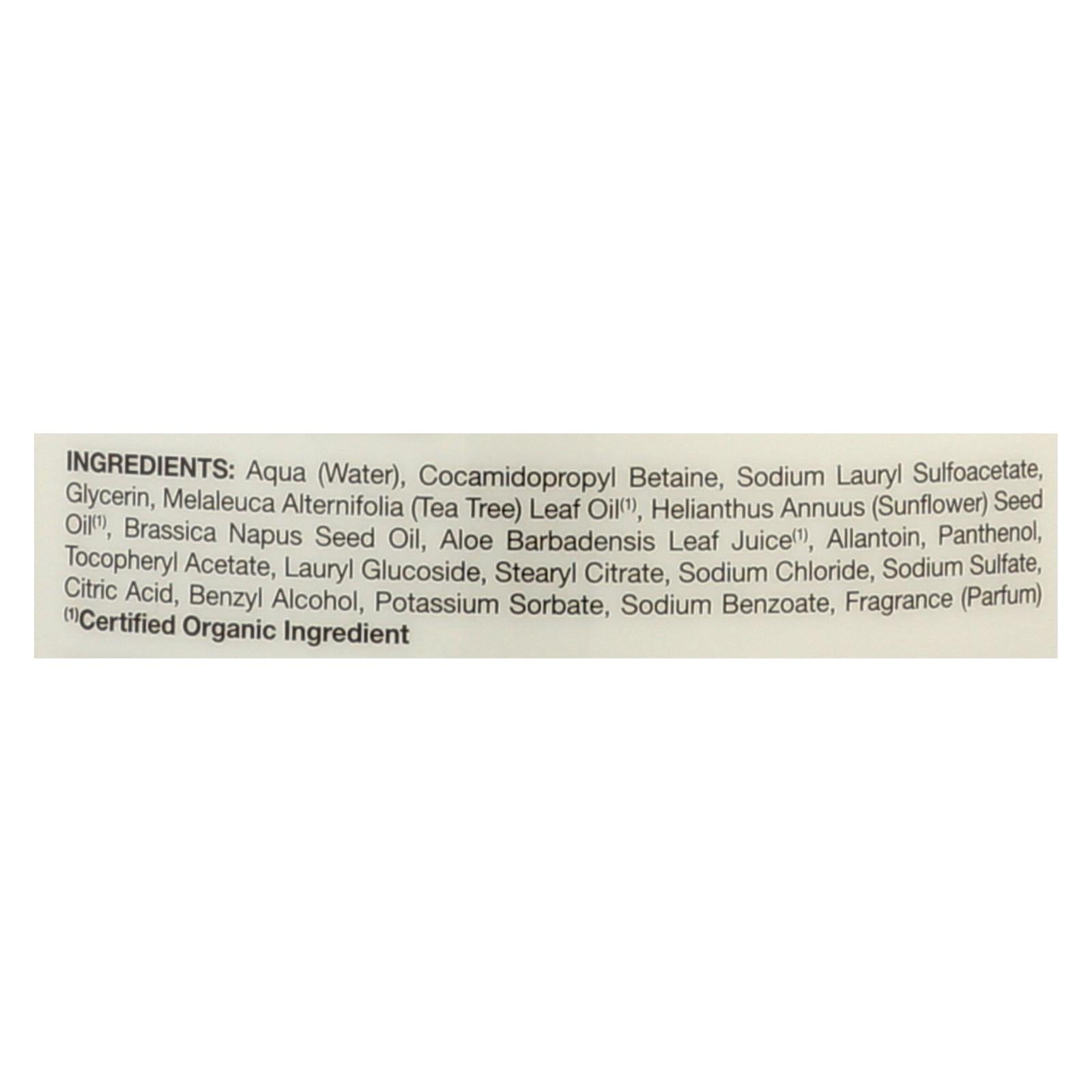 ingredients : aqua;water;cocamidopropyl betaine;sodium lauryl sulfoacetate;glycerin;melaleuca alternifolia;tea tree;leaf oil;¹;helianthus annuus;sunflower;seed oil;brassica napus seed oil;aloe barbadensis leaf juice;allantoin;panthenol;tocopheryl acetate;lauryl glucoside;stearyl citrate;sodium chloride;sodium sulfate;citric acid;benzyl alcohol;potassium sorbate;sodium benzoate;fragrance;parfum