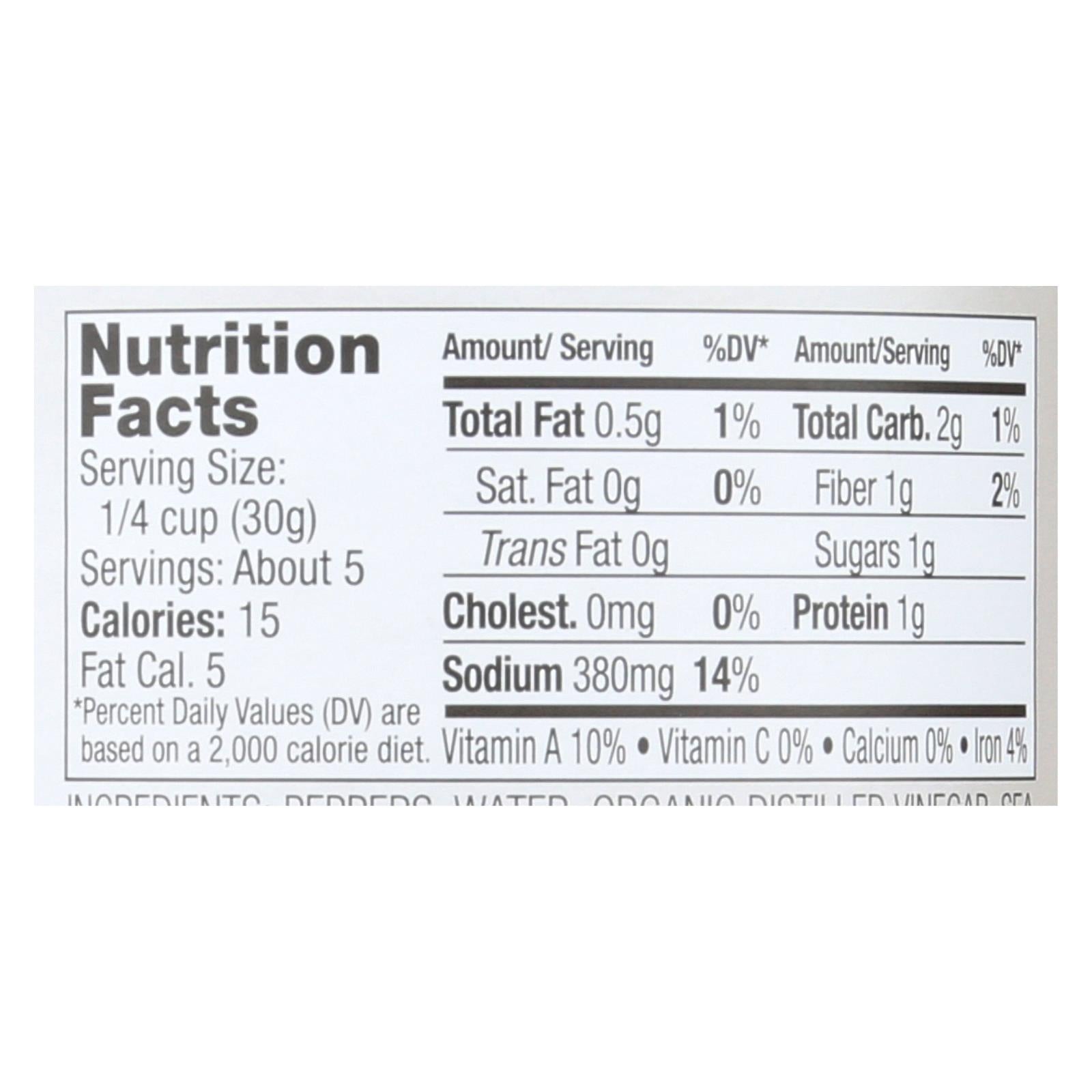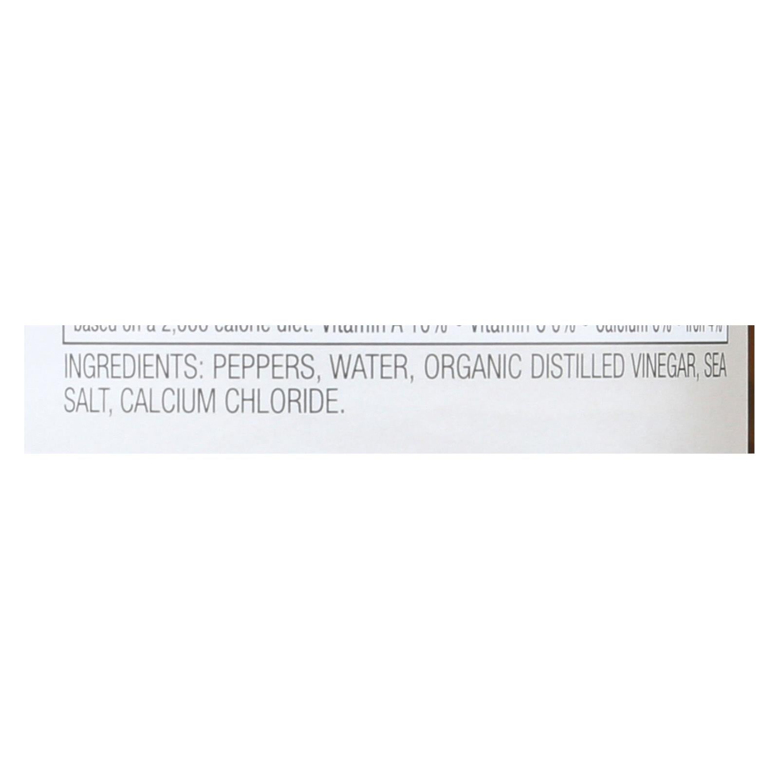 ingredients : peppers;water;organic distilled vinegar;sea salt;calcium chloride