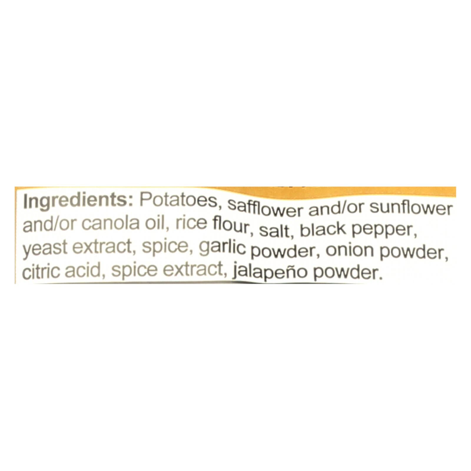 ingredients : potatoes;safflower and/or sunflower and/or canola oil;rice flour;salt;black pepper;yeast extract;spice;garlic powder;onion powder;citric acid;spice extract;jalapeño powder