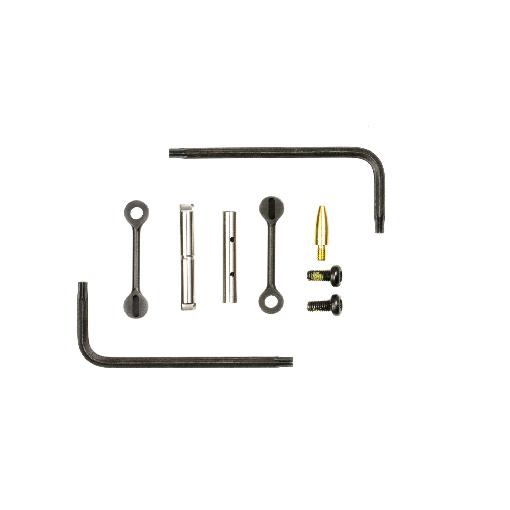 These are the STRONGEST pins that can be produced and were designed to withstand the high impact of full and semi-auto 9mm" .223" and 7.62mm suppressed weapons. The pins are stainless steel. Black side plates are black nitride treated, all other color options are DuraCoated. An absolute must-have for all M-16 owners. They will also protect your AR-15.