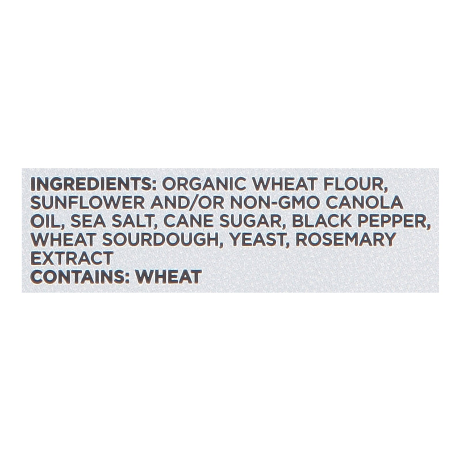 ingredients : organic wheat flour;canola & olive oil [non-gmo canola oil, olive oil, rosemary extract];sea salt;cane sugar;black pepper;durum wheat sourdough;yeast
