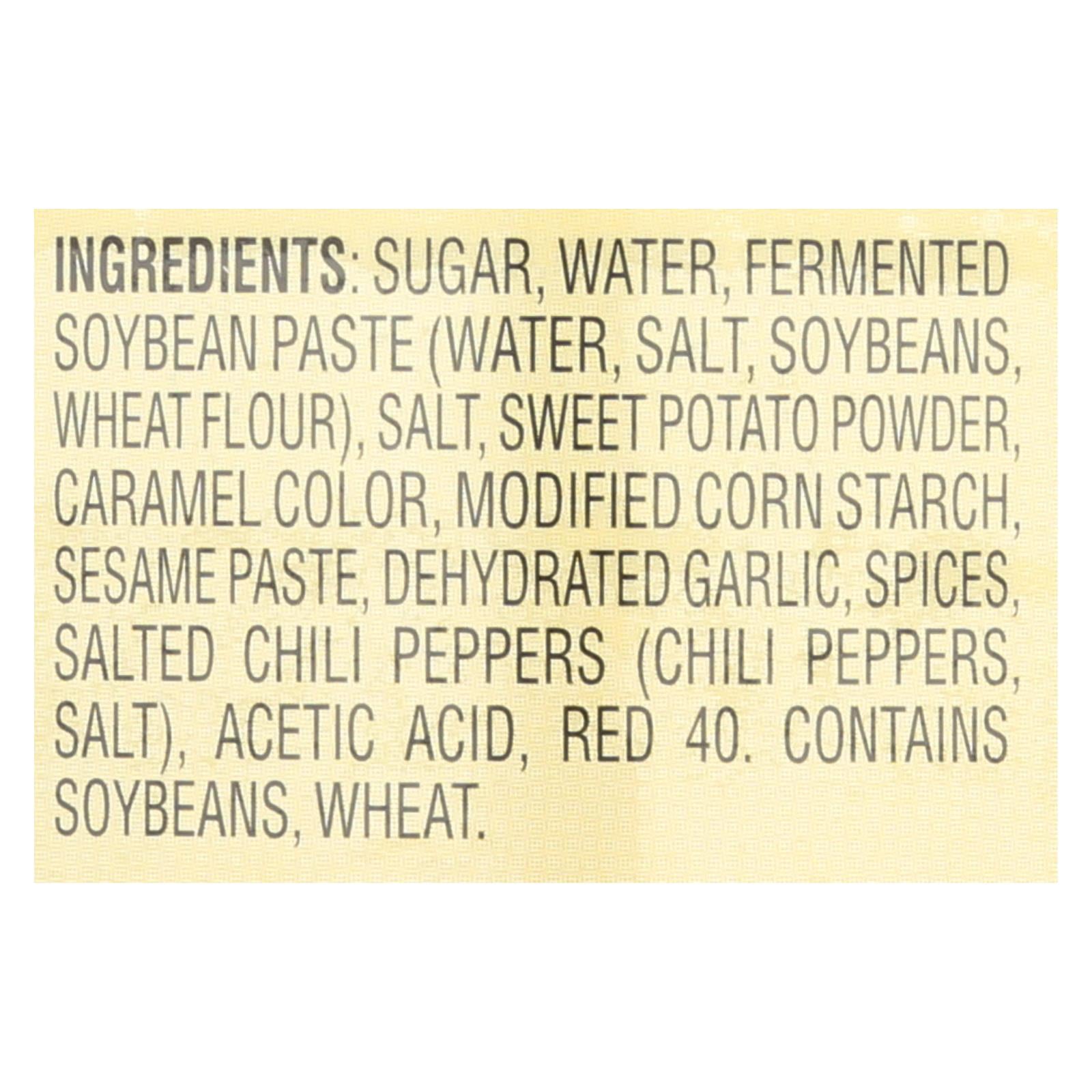 Lee kum kee's hoisin asian sauce is perfect for marinating, dipping and stir-frying. We use fermented soybean paste as the first ingredient and real salted chili peppers. Our sauce is made in china, so you know that you're getting an authentic sauce with an authentic flavor. The 8.5 oz. Jar has 6 servings in it with 90 calories per serving.