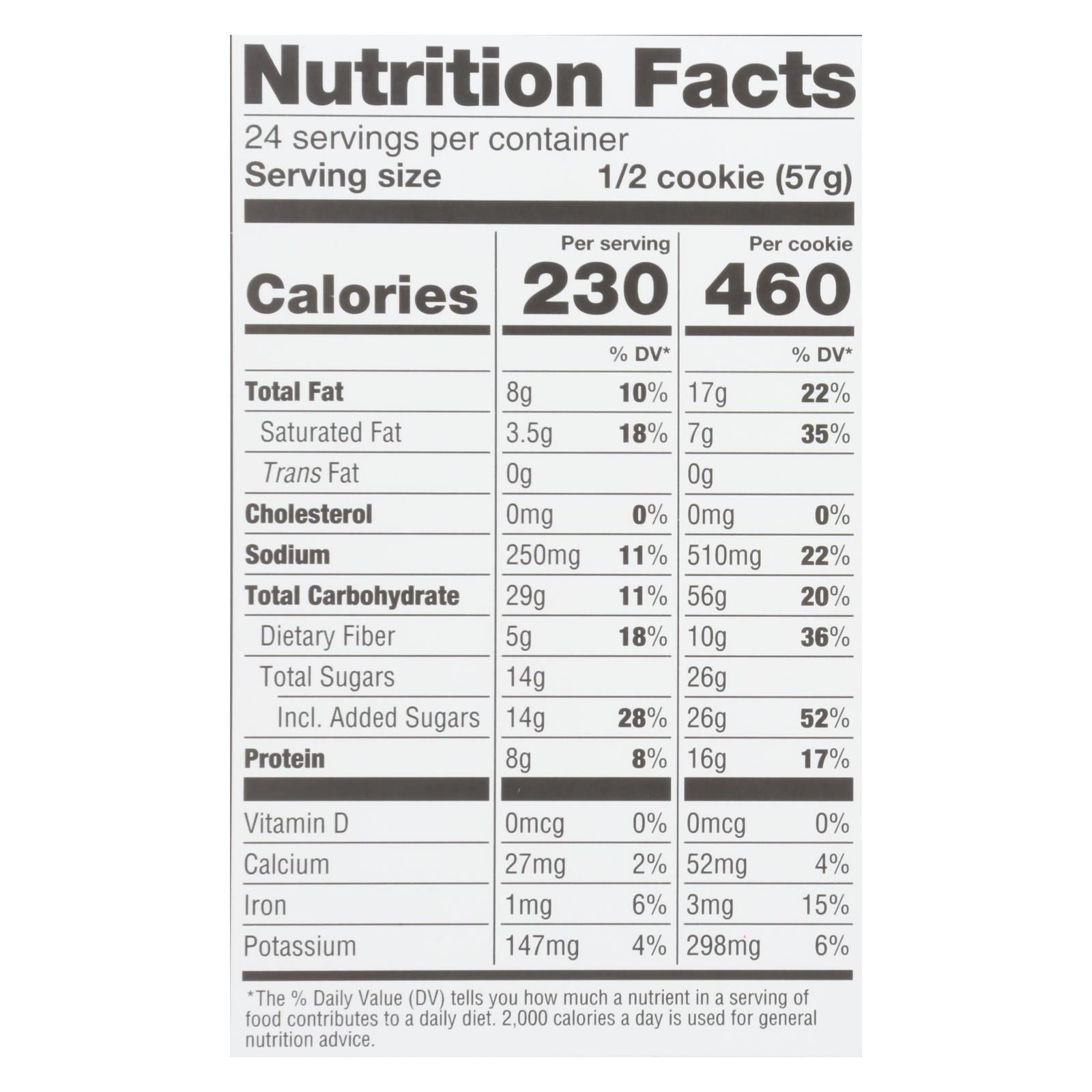 10 g fiber per cookie. 16 g protein per cookie. See nutrition information for sat. Fat content. Vegan. Non gmo project verified. Nongmoproject.org. Plant-based. Baked nutrition. A complete world of goodies. Live the complete life with us lenny & larry's. The complete package: 16 g protein per cookie; 10 g fiber per cookie; non-gmo project verified; no soy ingredients (manufactured in a facility that also processes peanut, tree nut, soy, milk and egg); no dairy ingredients (manufactured in a facility that also processes peanut, tree nut, soy, milk and egg); no egg (manufactured in a facility that also processes peanut, tree nut, soy, milk and egg); vegan; kosher; no high fructose corn syrup; no artificial sweeteners; 0 g sugar alcohols; sustainable palm oil. Lennylarry.com. Instagram. Facebook. Lennyandlarrys. Baked in usa.