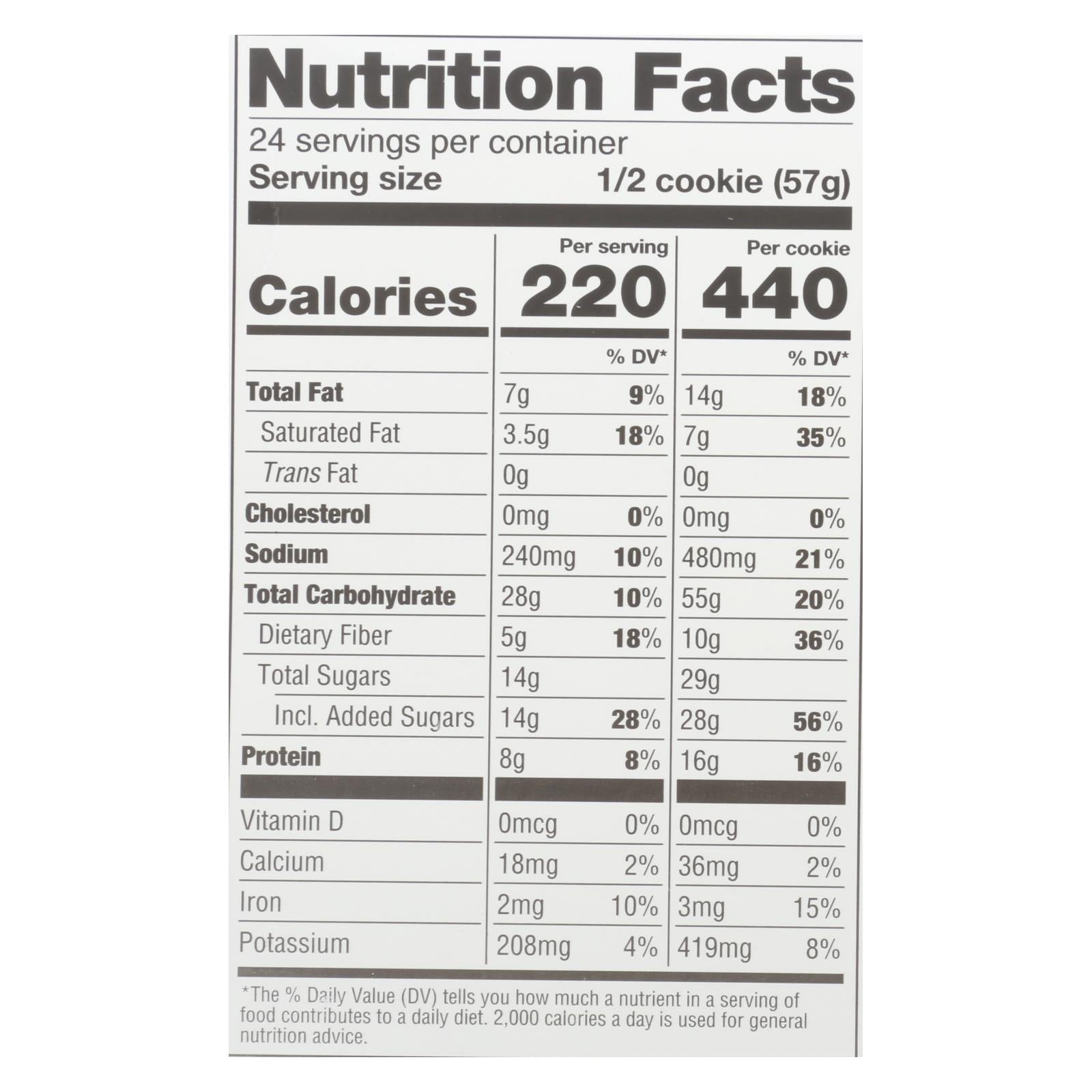 10 g fiber per cookie. 16 g protein per cookie. 0 g sugar alcohols. Vegan. See nutrition information for sat fat content. No soy ingredients (manufactured in a facility that also processes peanut, tree nut, soy, milk and egg); no dairy ingredients (manufactured in a facility that also processes peanut, tree nut, soy, milk and egg); no egg. Non gmo project verified. Nongmoproject.org. Plant-based. Baked nutrition. Live the complete life with us lenny & larry's. The complete package: no high fructose corn syrup; no artificial sweeteners; sustainable palm oil. Lennylarry.com. Instagram. Facebook. A complete world of goodies lennylarry.com. Baked in usa.
