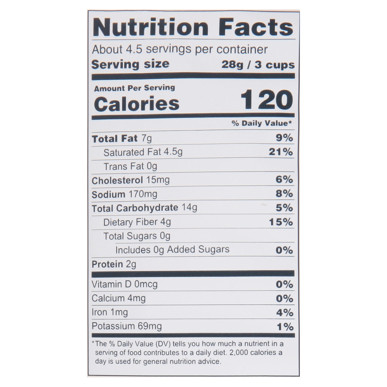 Lesserevil buddha bowl oh my ghee! organic popcorn is made with organic grass-fed clarified butter and himalayan salt. This popcorn is cholesterol-free, whole grain, vegan and contains only 110 calories per serving. It’s also gluten-free, usda organic and non-gmo. Includes one 5 oz. Bag of lesserevil popcorn. See nutrition facts panel for allergens. At lesserevil, we choose organic because organic foods are grown without toxic pesticides, synthetic fertilizers or genetic engineering and provide sustainable farming practices to protect environmental health while improving it. We believe it’s better for the planet and better for you.