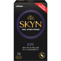 The next generation of condoms. Ultra-thin and soft for an ultra sensitive feeling, SKYN Elite condoms take the experience of the closest thing to wearing nothing to the next level. Made of polyisoprene, a scientifically formulated non-latex material which provides a softer, more natural feel and has been proven to enhance stimulation. Combines the strength of premium latex with the sensitivity of an ultra-thin condom for that Skyn-to-Skyn sensation. Long-lasting, ultra-smooth lubricant enhances the experience. Each condom is electronically tested to meet U.S. Safety and Reliability standards. Pack of 10.