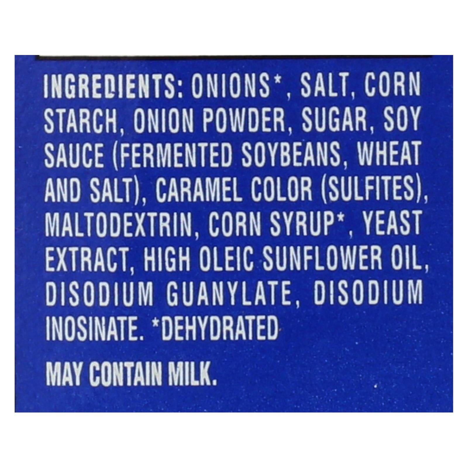 ingredients : onion;salt;corn starch;onion powder;sugar;soy sauce;fermented soybeans;wheat and salt;caramel color;sulfites;maltodextrin;corn syrup;yeast extract;high oleic sunflower oil;disodium guanylate;disodium inosinate