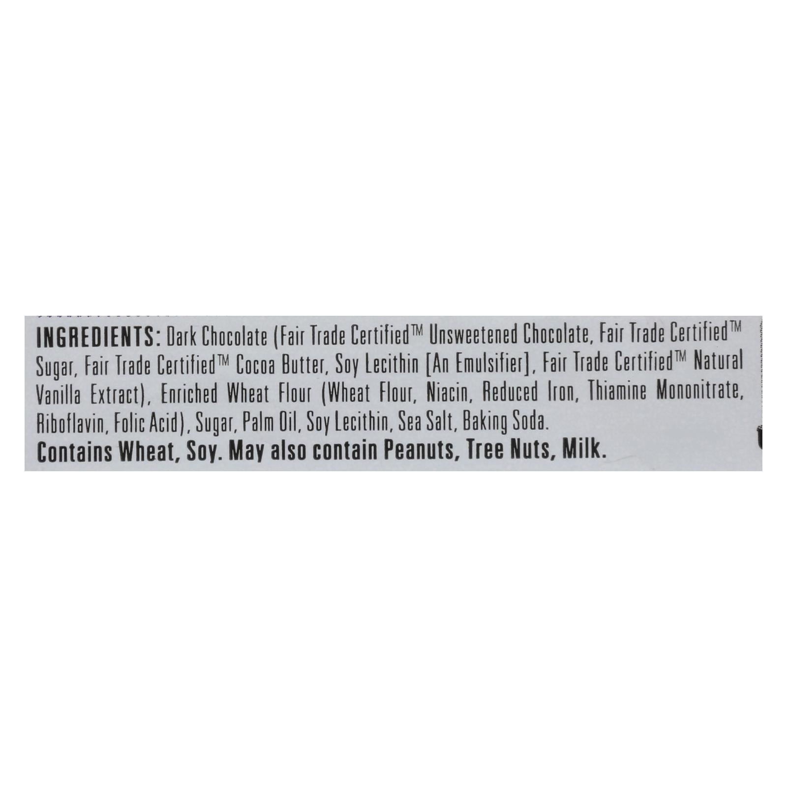 ingredients : dark chocolate;fair trade certified™ unsweetened chocolate;fair trade certified™ sugar;fair trade certified™ cocoa butter;sunflower lecithin;enriched wheat flour;wheat flour;niacin;iron;thiamine;riboflavin;folic acid;palm oil;sugar;skimmed cocoa powder;sugar cane fiber;soy lecithin;salt;sea salt;ascorbic acid