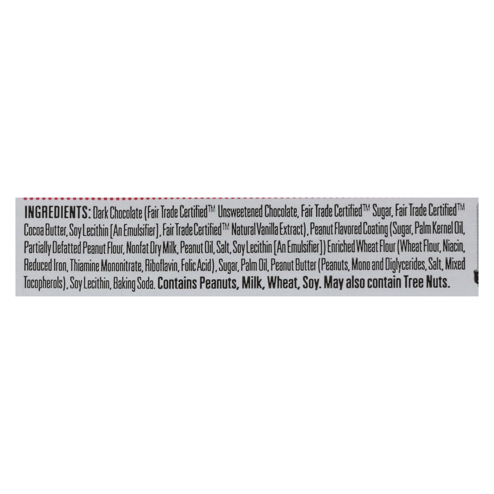 ingredients : dark chocolate;fair trade certified™ unsweetened chocolate;fair trade certified™ sugar;fair trade certified™ cocoa butter;butterfat;milk;sunflower lecithin;palm oil;peanut butter;wheat flour;whey milk powder;salt;vanilla extract;baking soda
