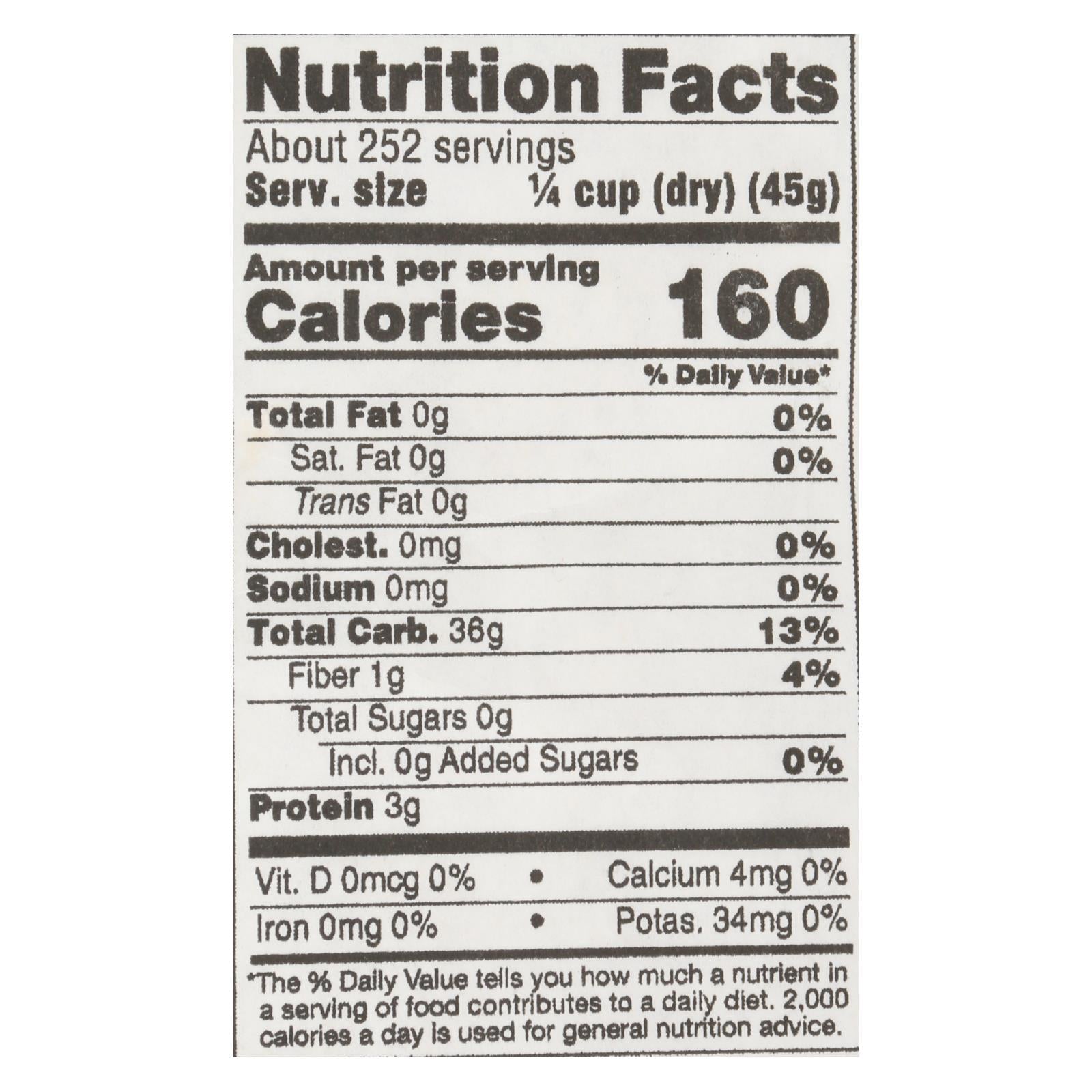 Lundberg family farms california sushi rice is a classic japanese short grain rice your family will love. Fragrant, colorful and delicious, this rice is a perfect addition to meals when potatoes just won't do. Whole grain organic goodness and chewy texture will make this rice an instant hit with children. Each bag of lundberg family farms california sushi rice contains 25 lbs. Of product, translating into about 252 servings and 150 calories per serving. See nutrition facts panel for allergens.